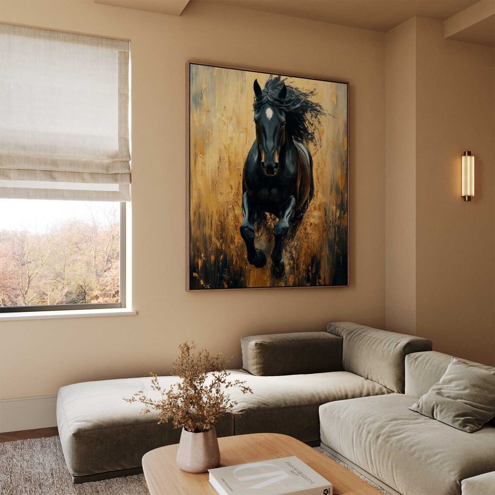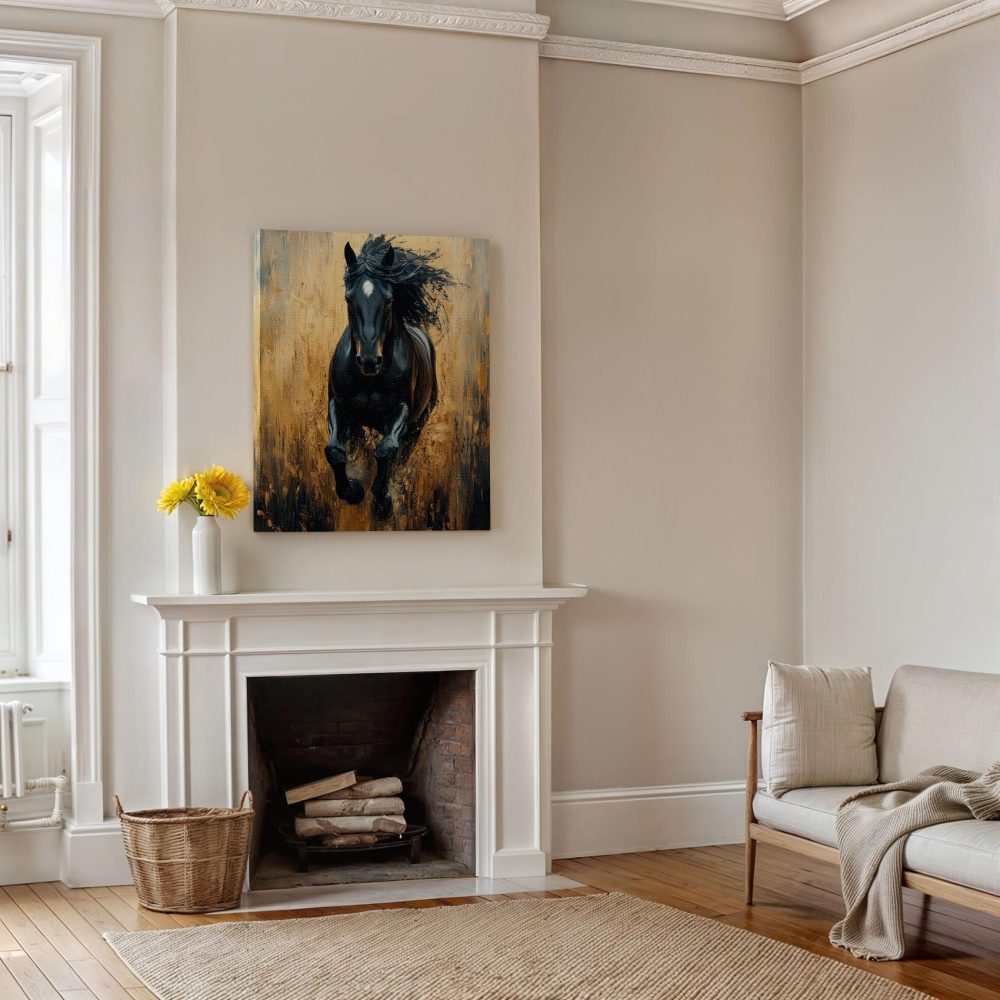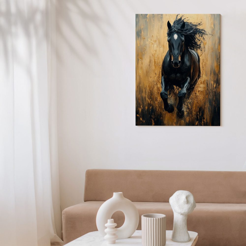Terug naar collectie / Schilderijen / Abstract Schilderij / Zwart-witte galopperende kracht