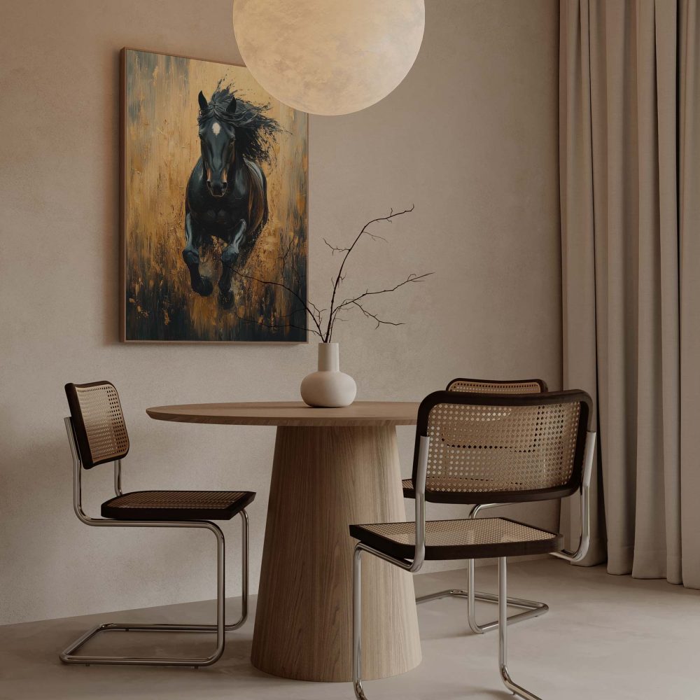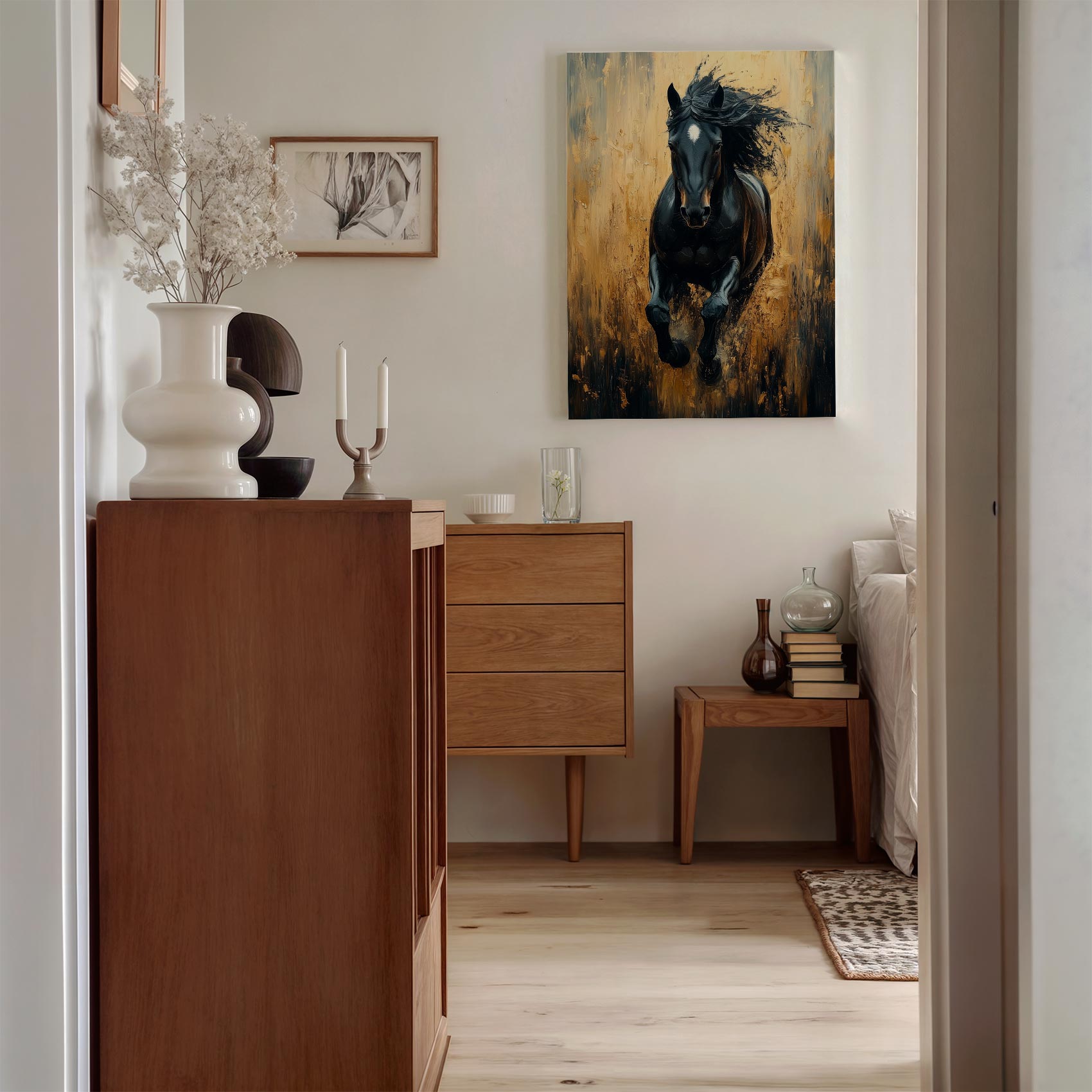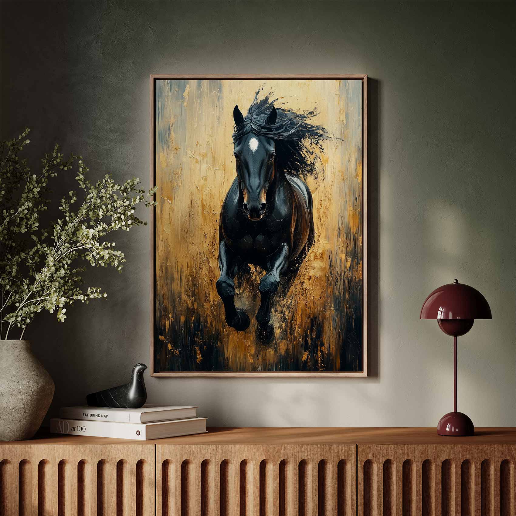 Terug naar collectie / Schilderijen / Abstract Schilderij / Zwart-witte galopperende kracht