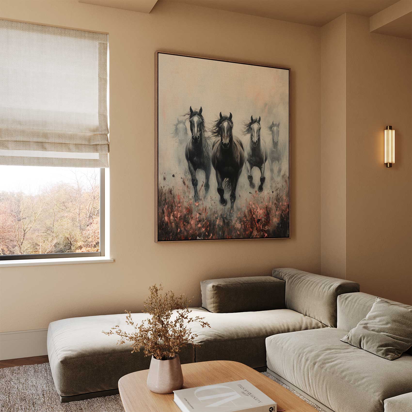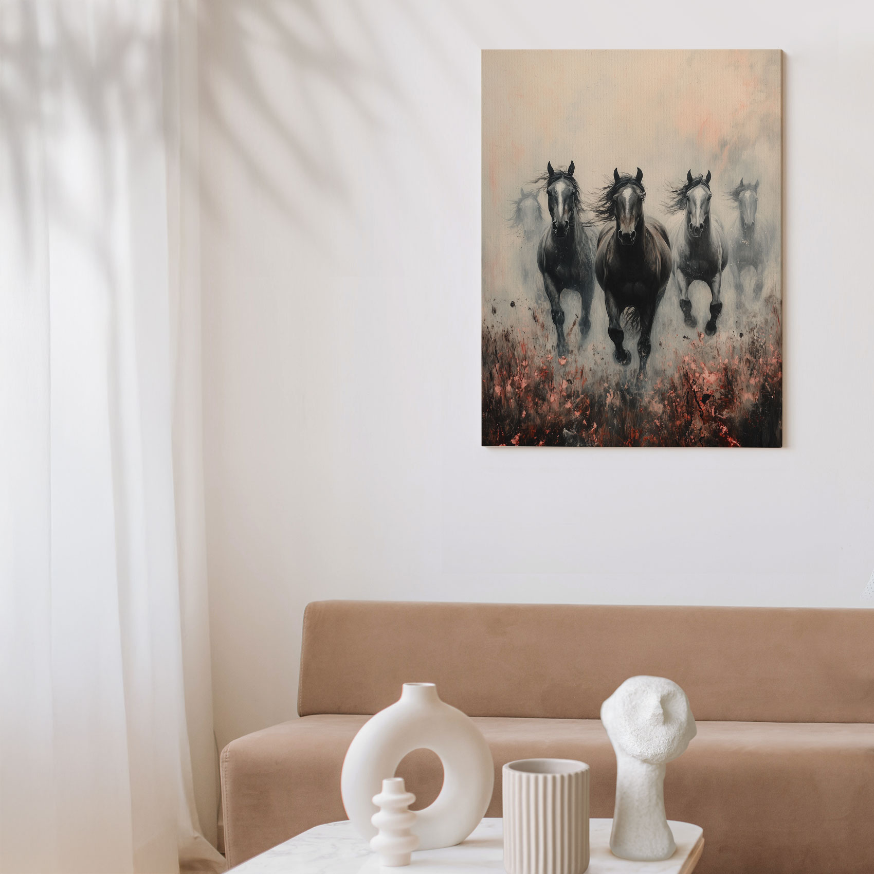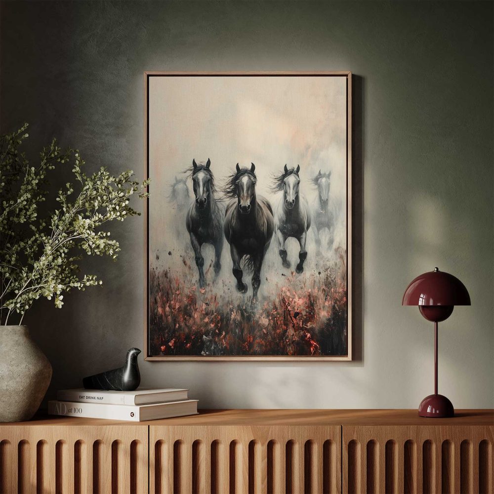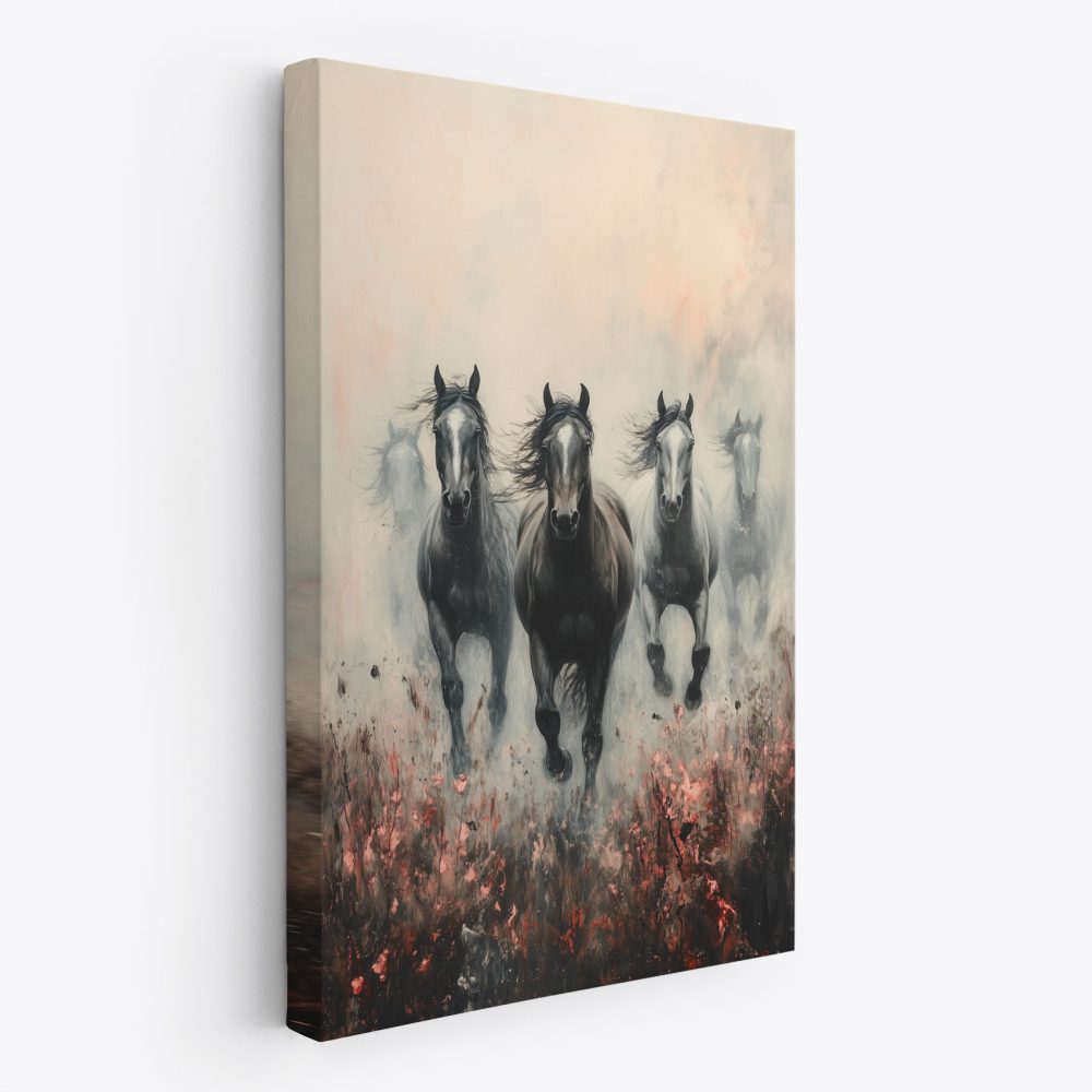 Terug naar collectie / Schilderijen / Bloemen Schilderij / Zwart-witte galopperende paarden