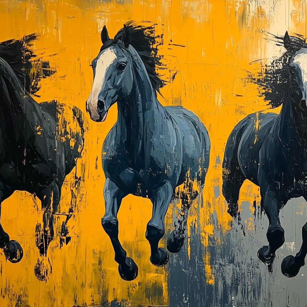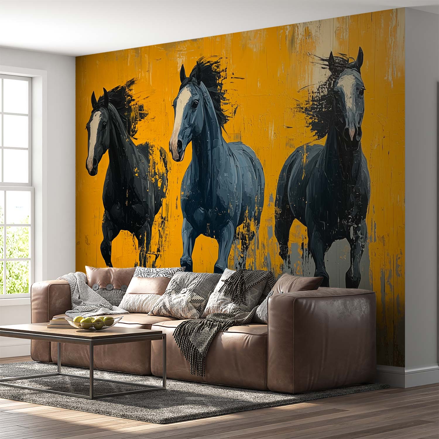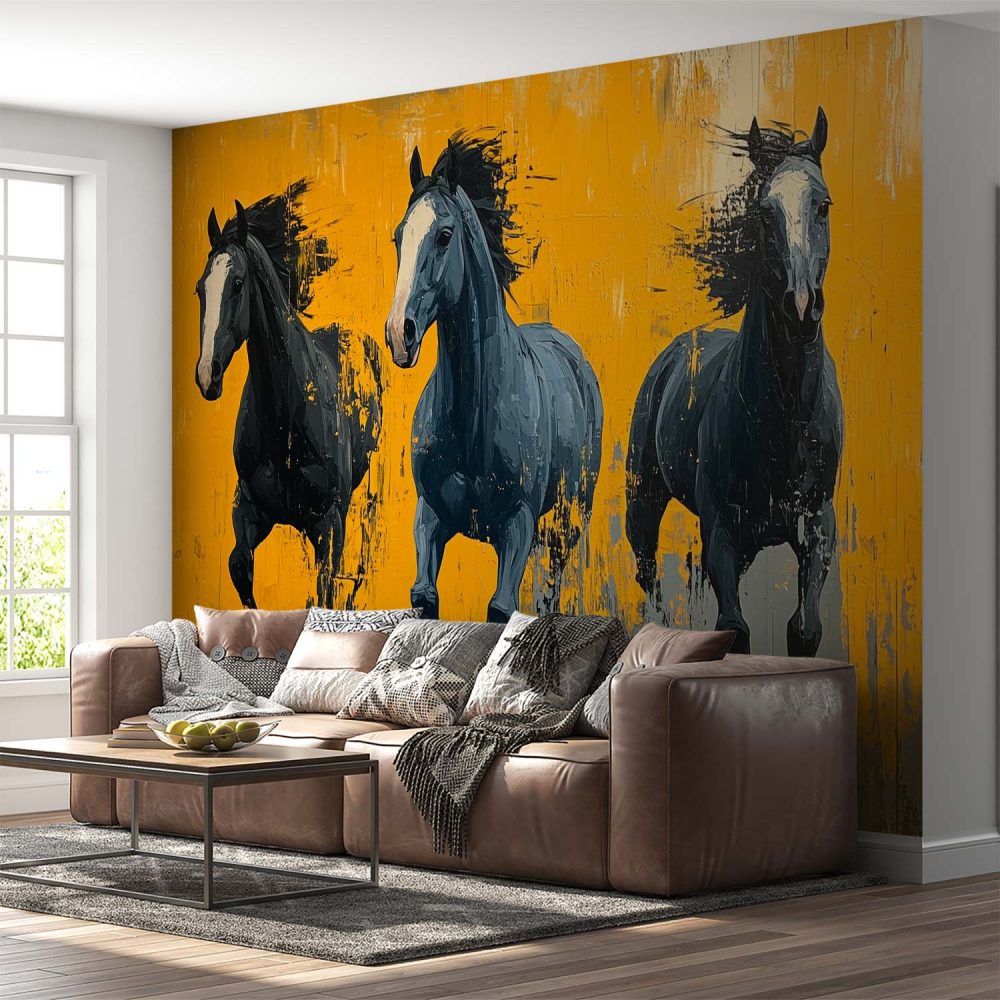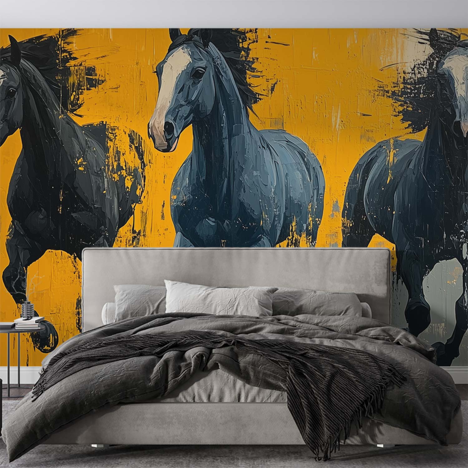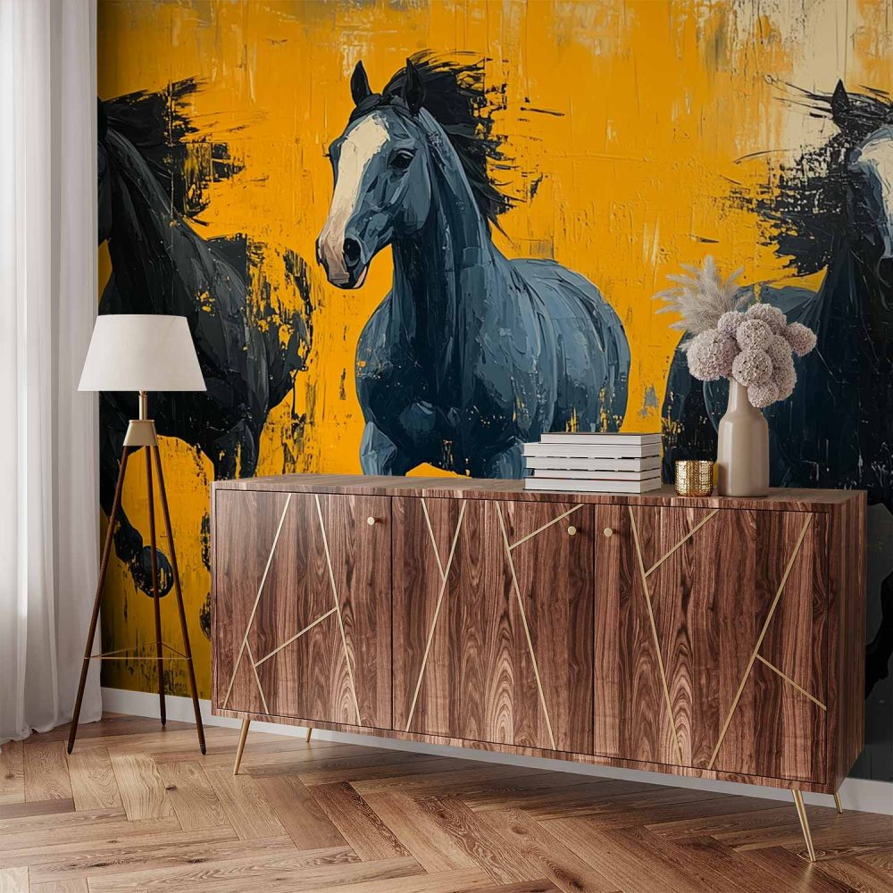 Terug naar collectie / Behang / Abstract behang / Zwart-witte galopperende paarden behang