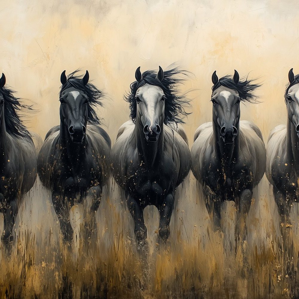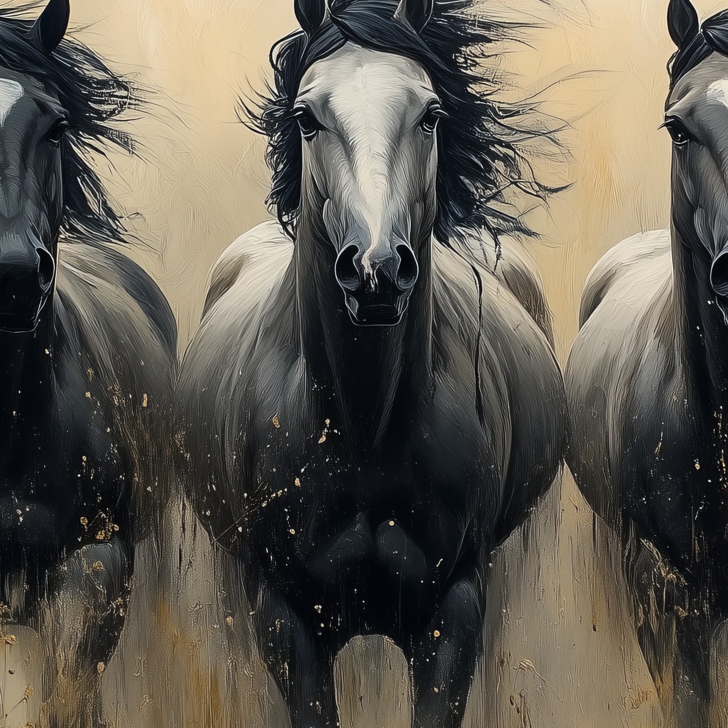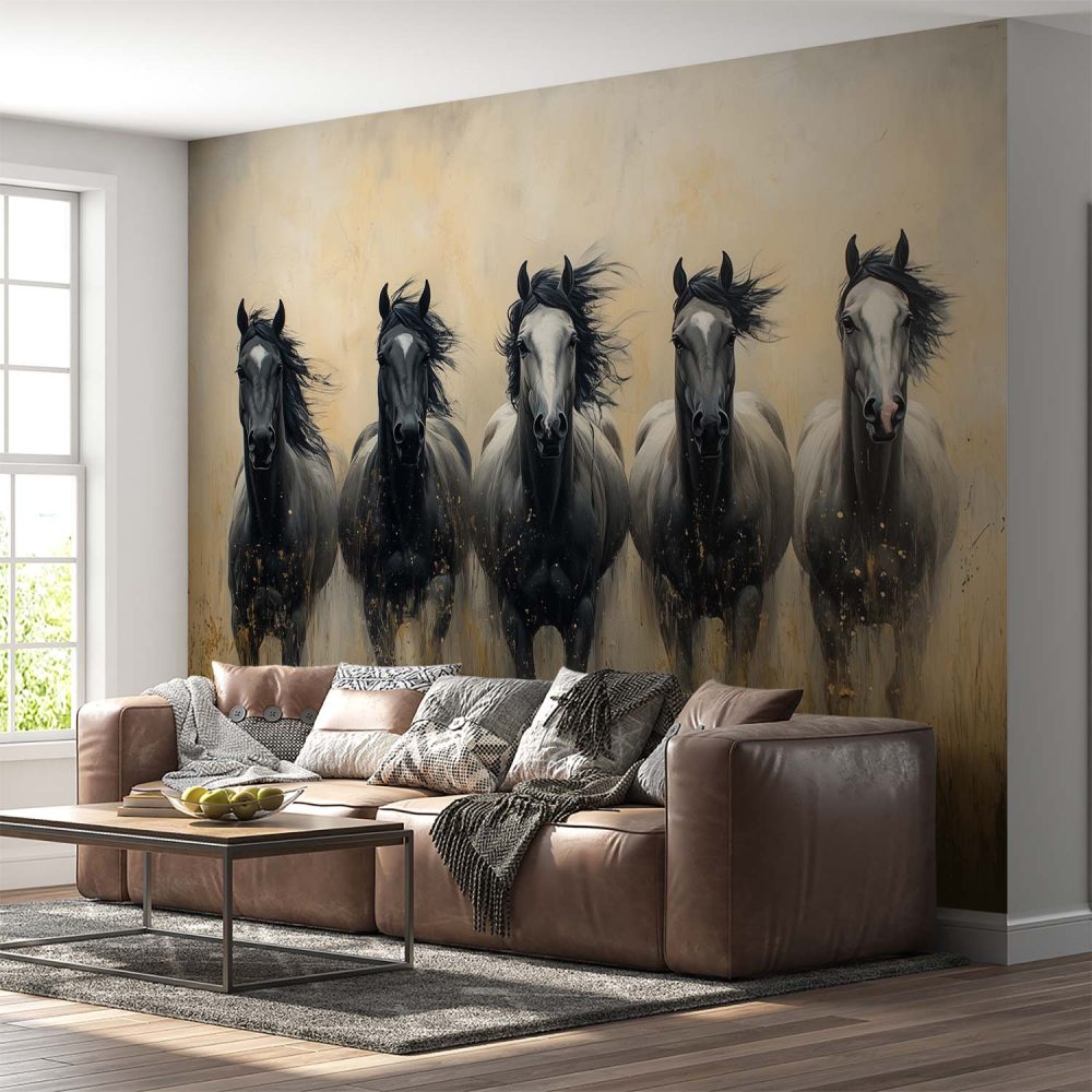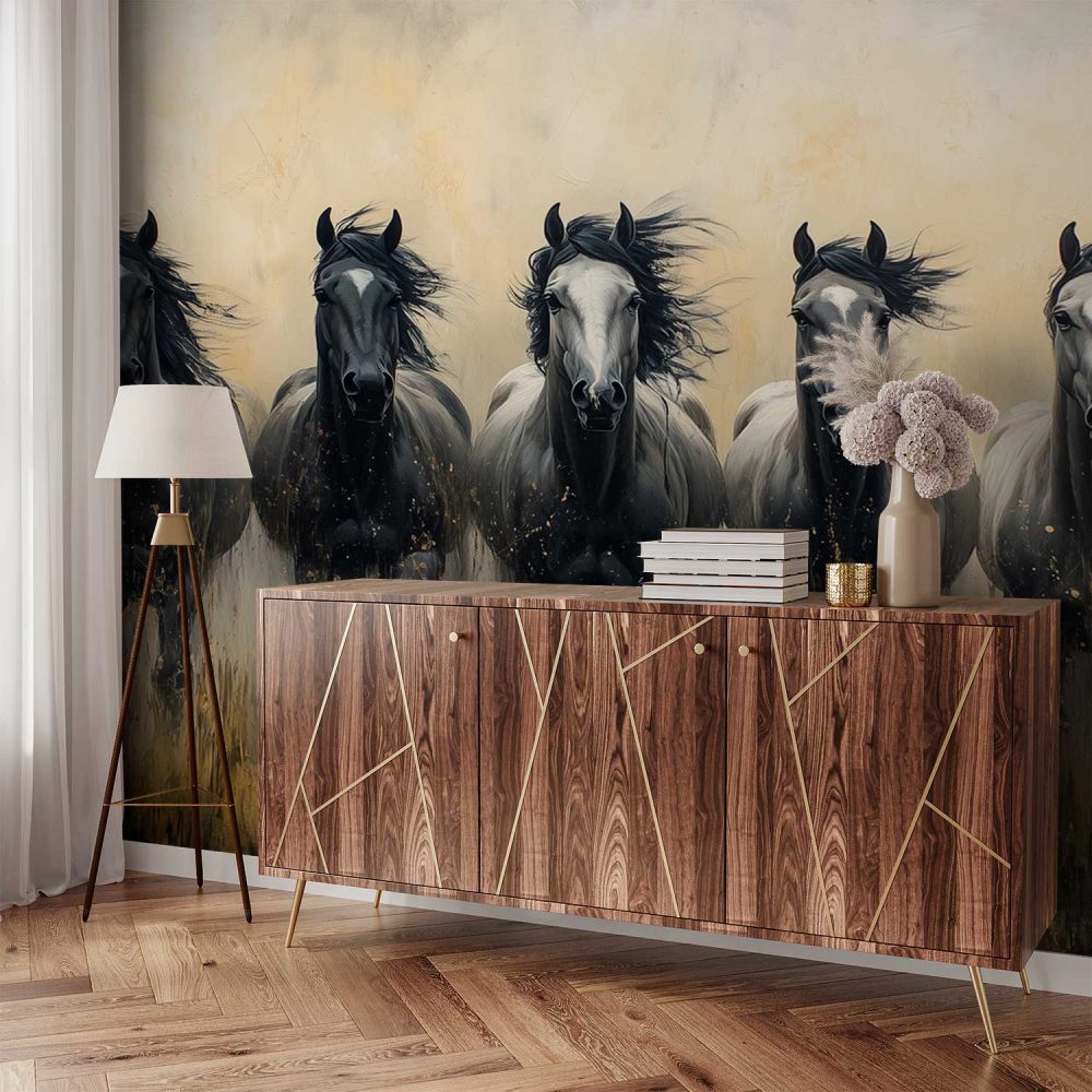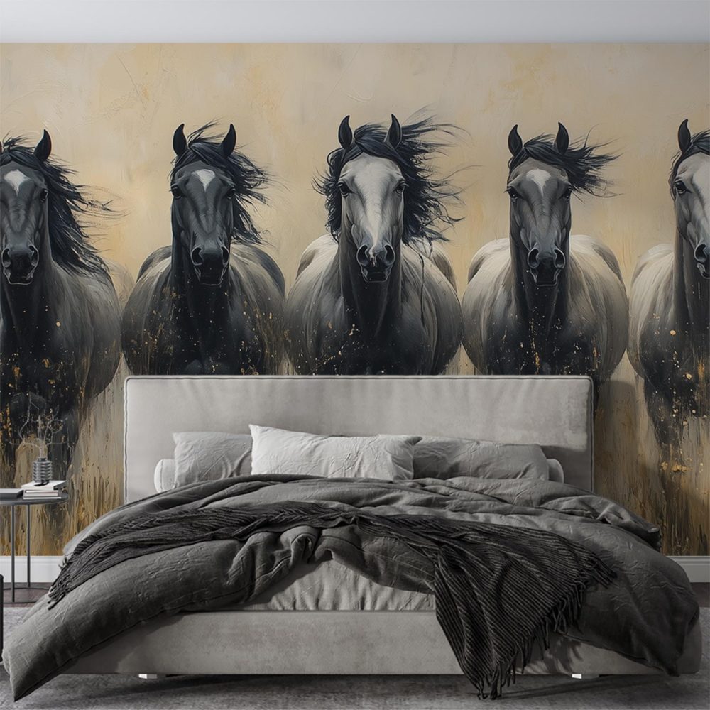 Terug naar collectie / Behang / Zwart-witte rennende paarden behang