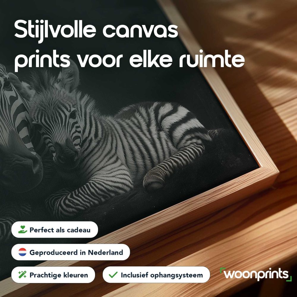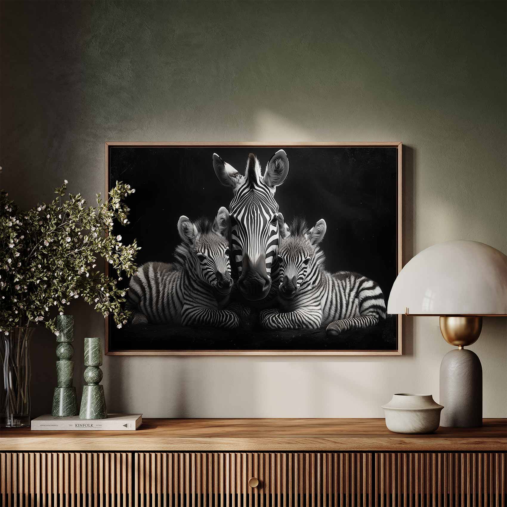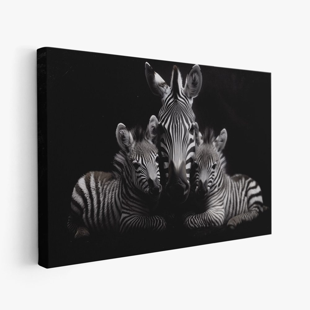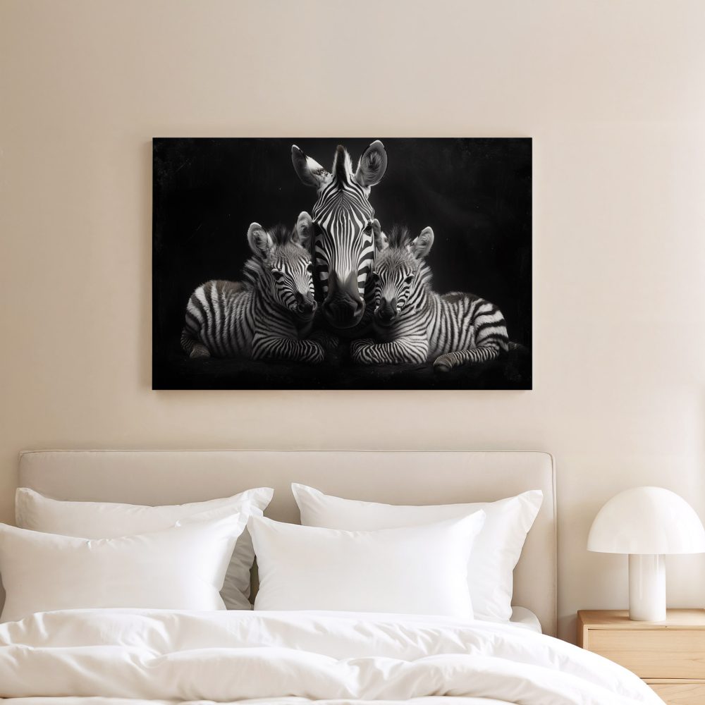 Terug naar collectie / Schilderijen / Dieren Schilderij / Zwart-witte zebrafamilie rust