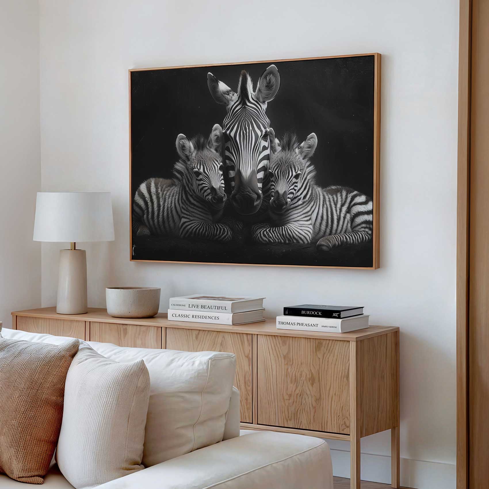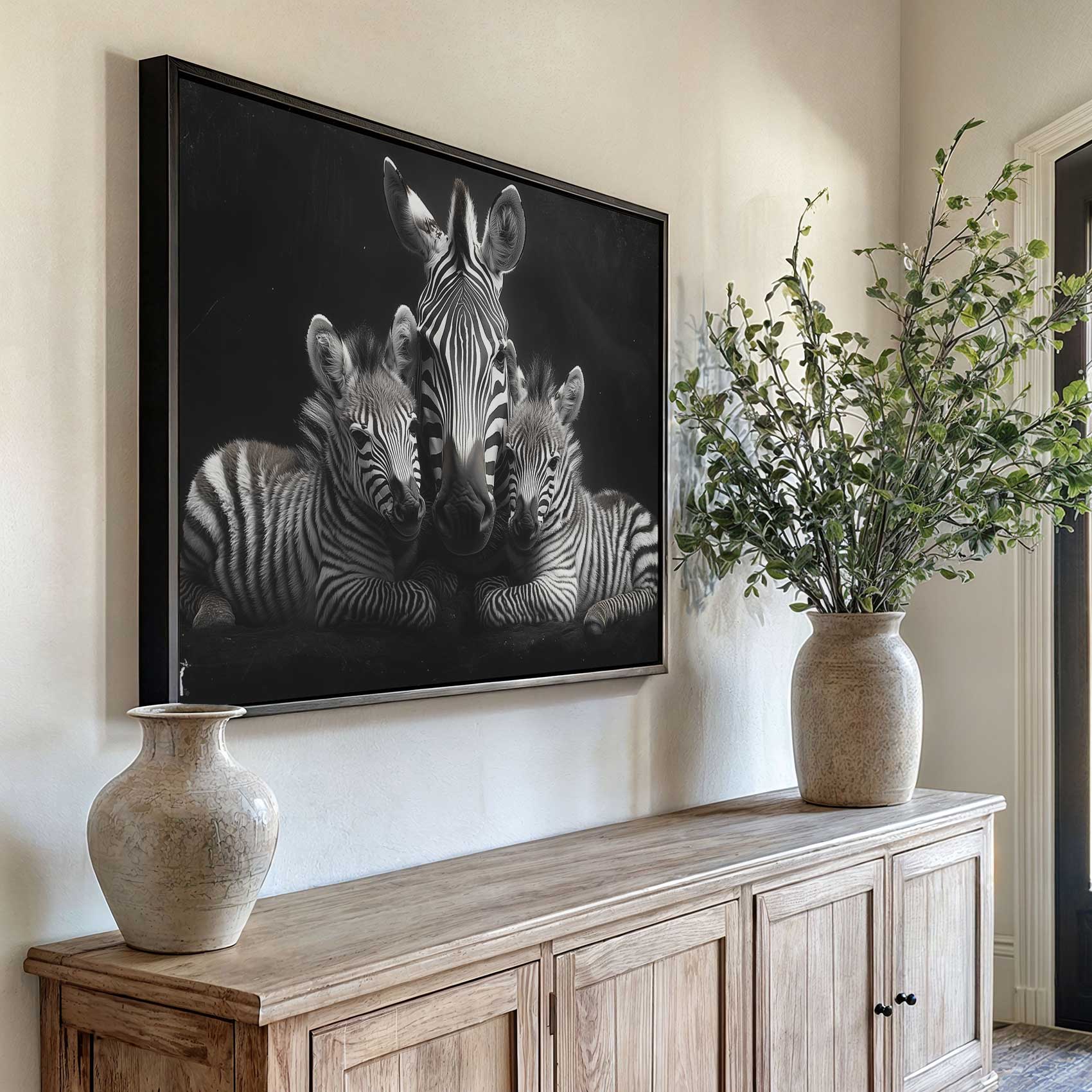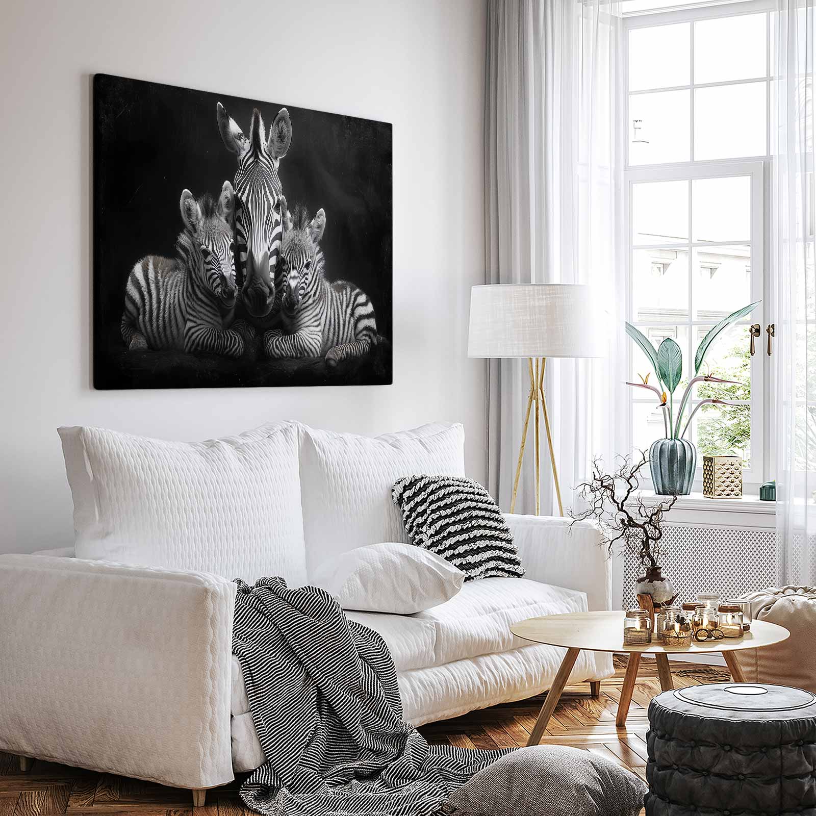 Terug naar collectie / Schilderijen / Dieren Schilderij / Zwart-witte zebrafamilie rust