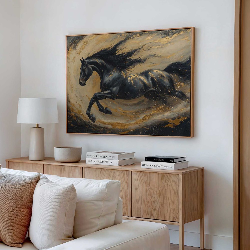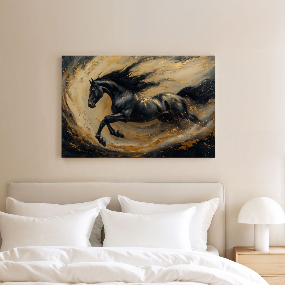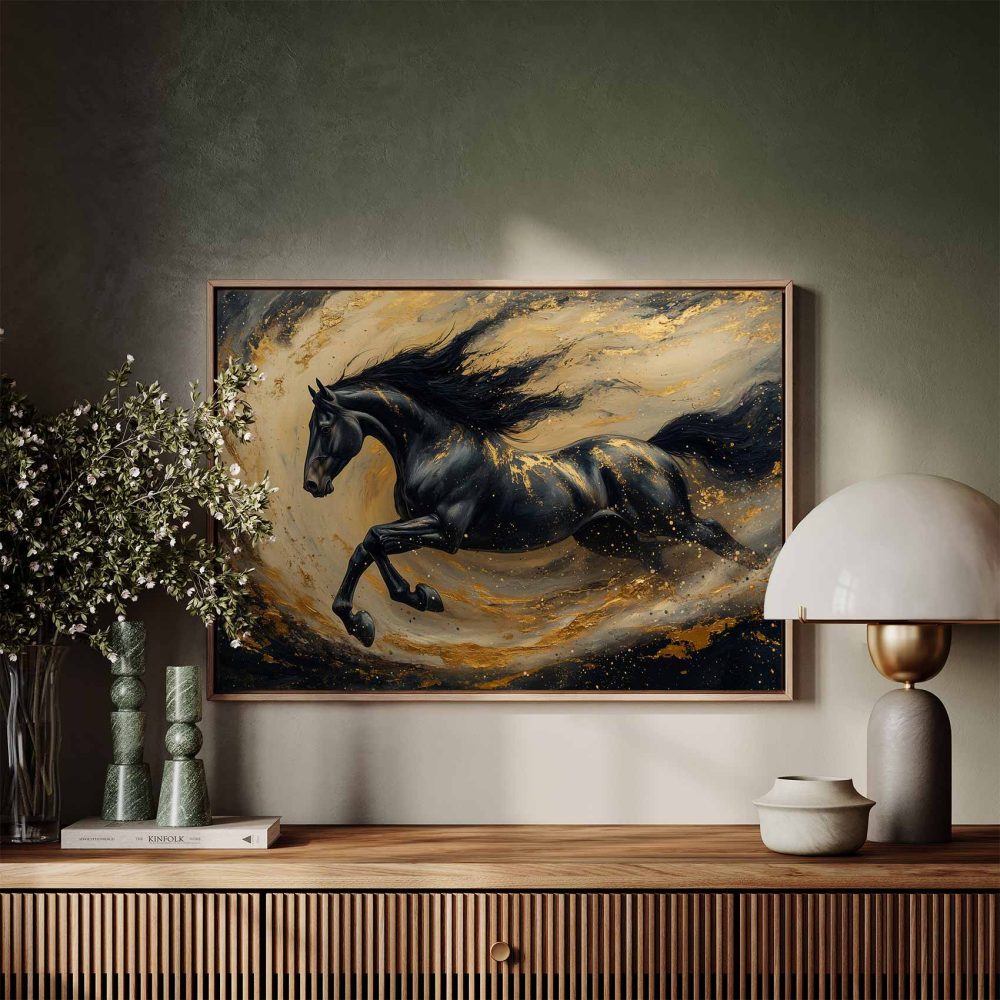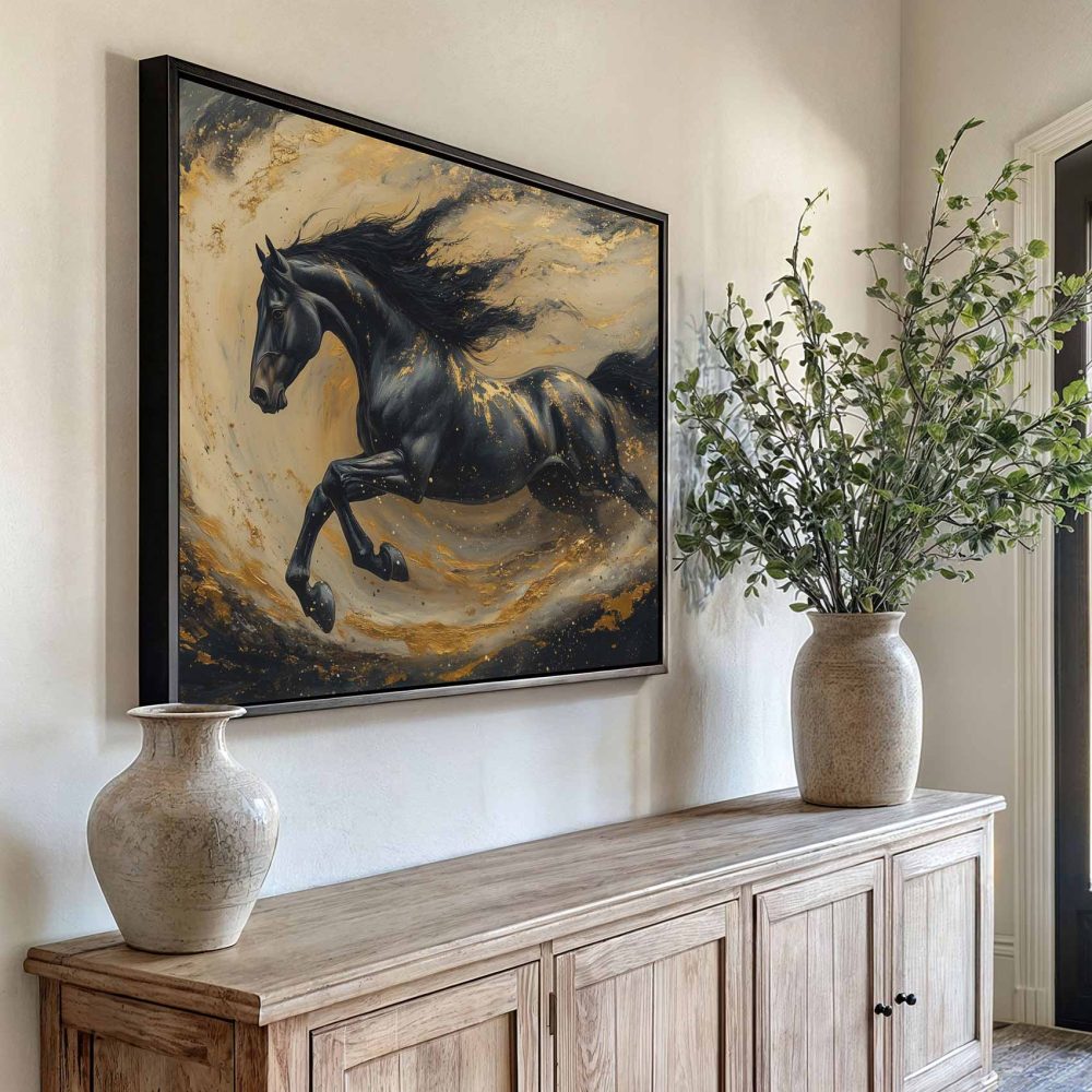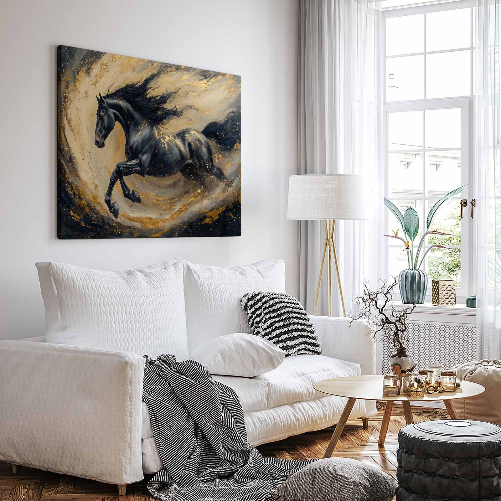 Terug naar collectie / Schilderijen / Abstract Schilderij / Zwarte galopperende krachtpaard