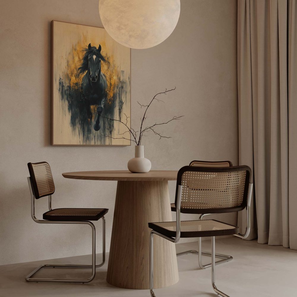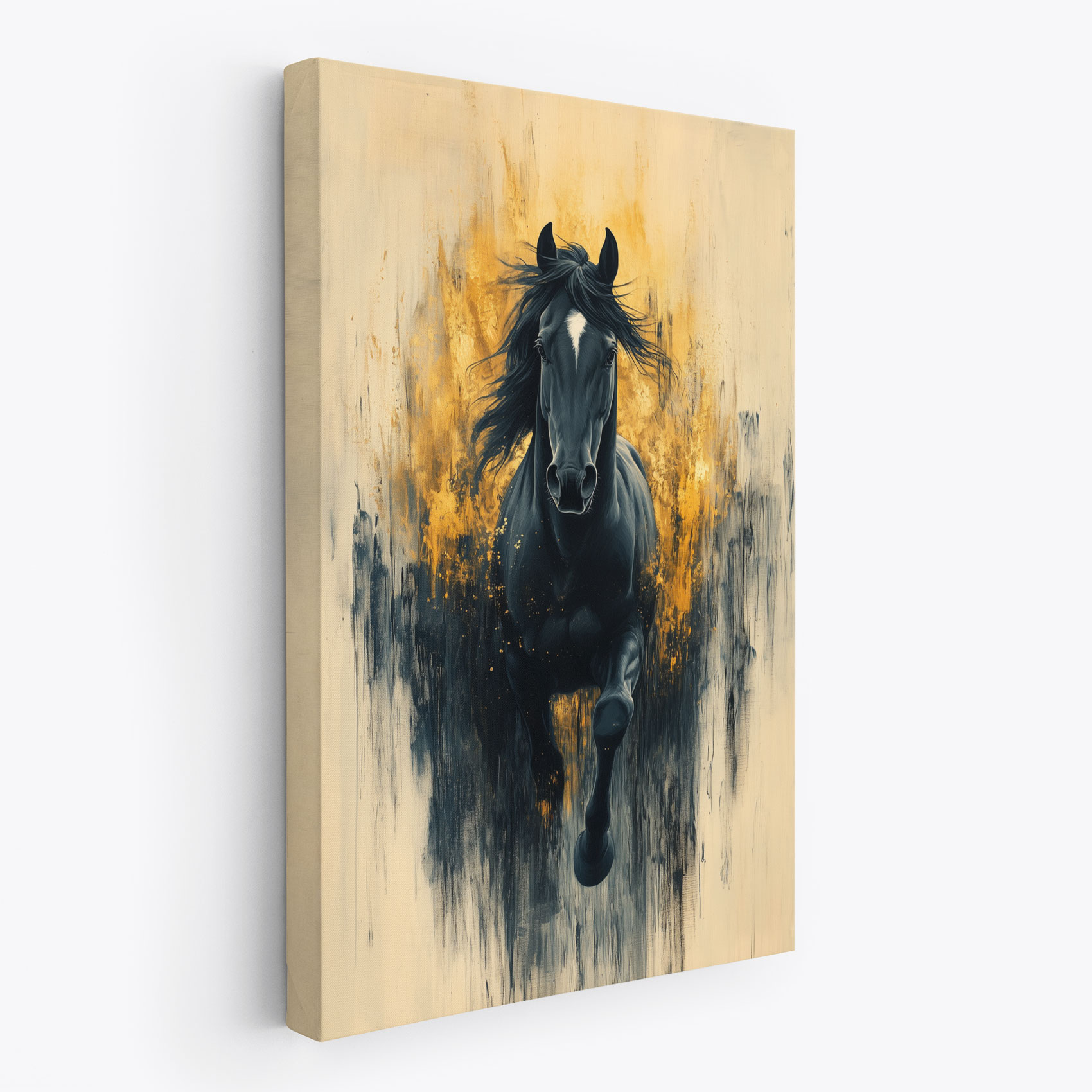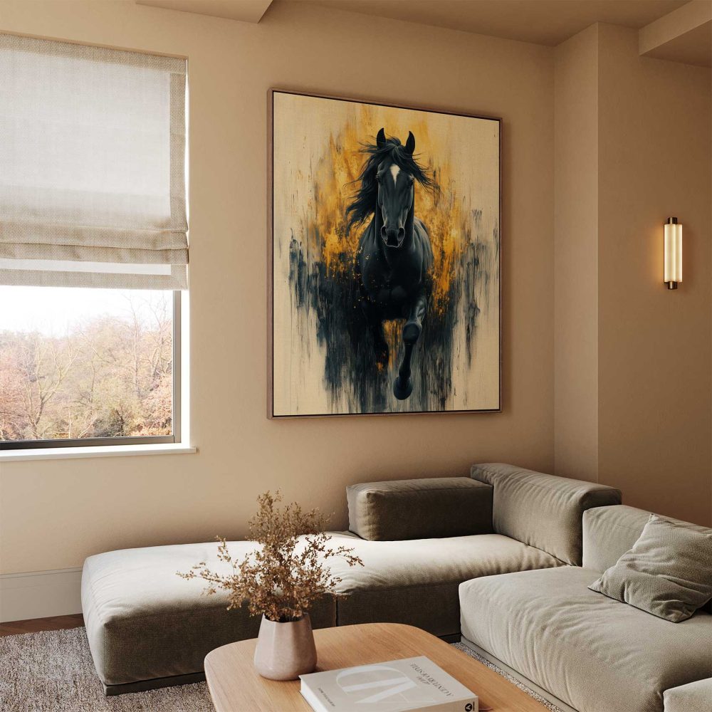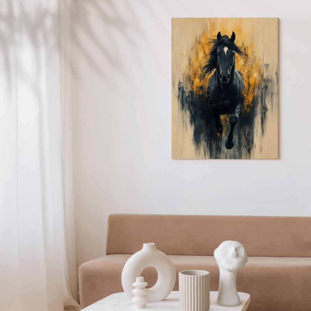 Terug naar collectie / Schilderijen / Dieren Schilderij / Zwarte galopperende krachtpatser