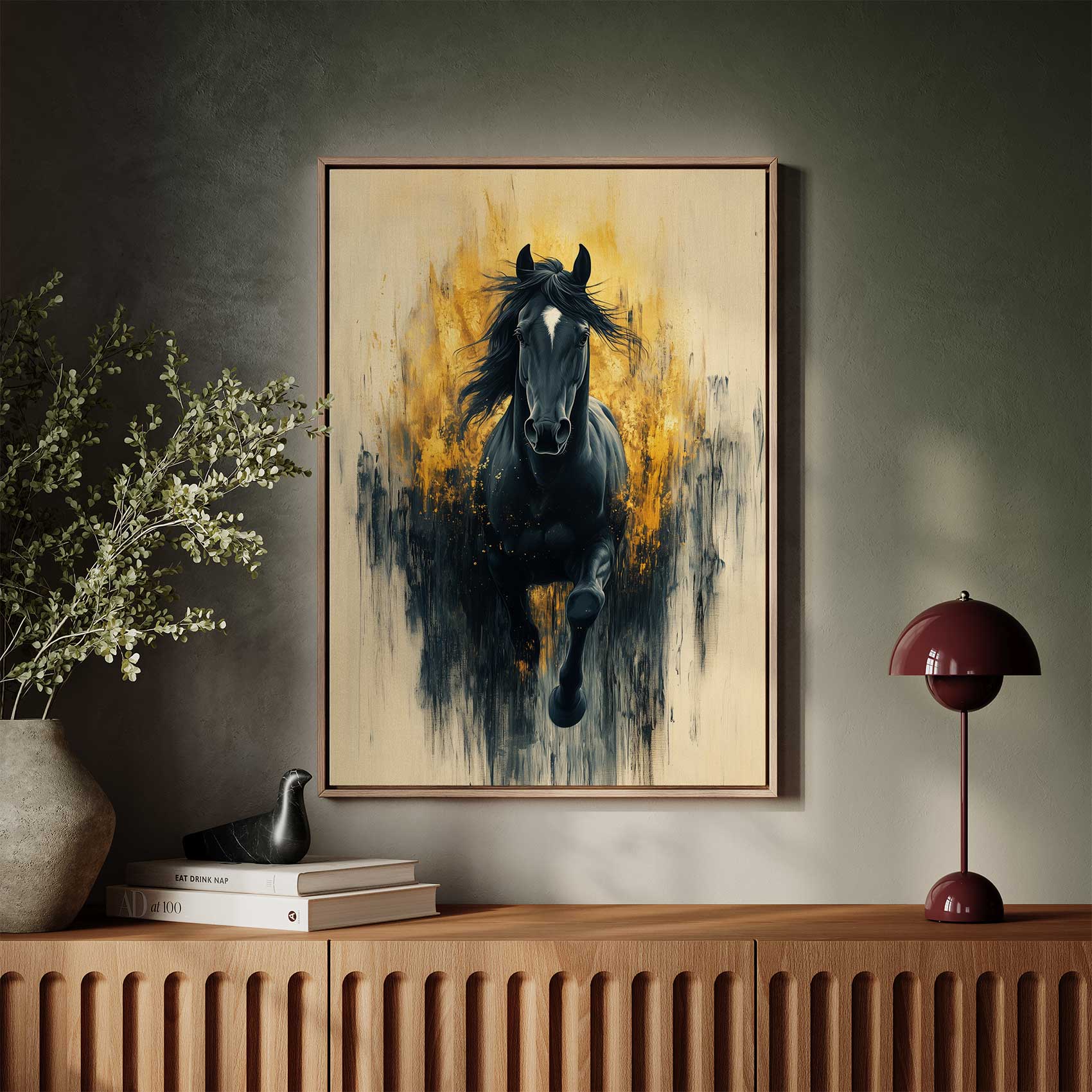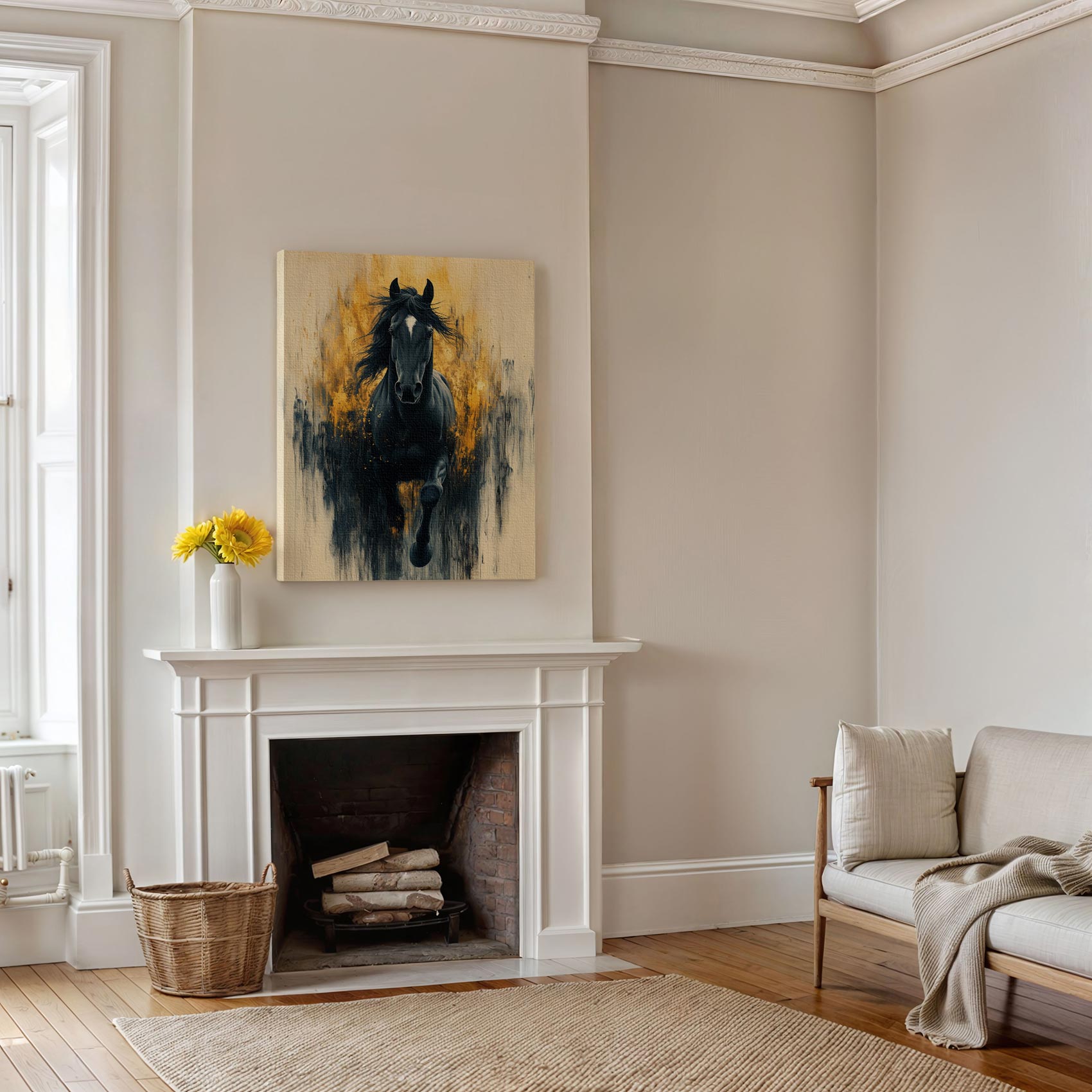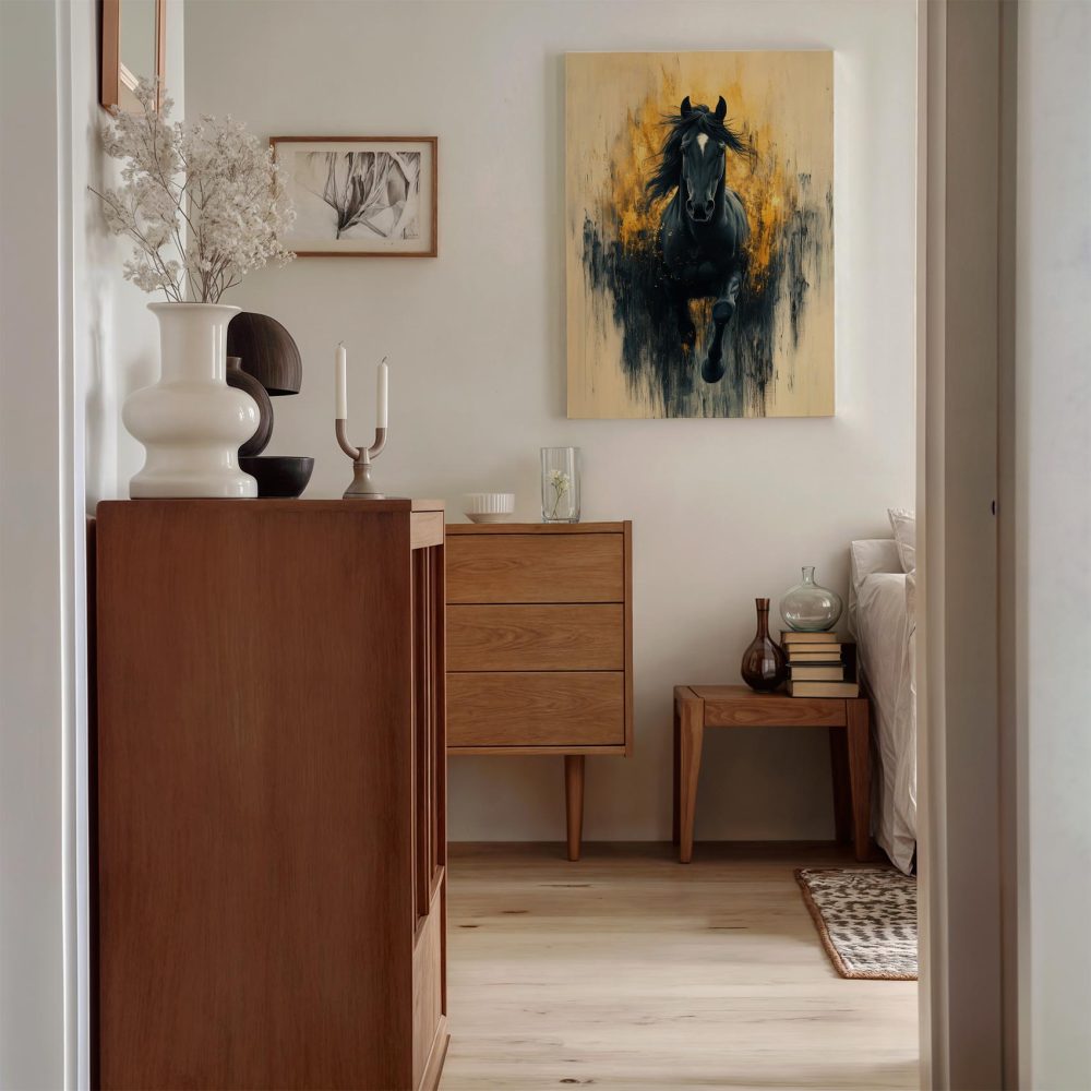 Terug naar collectie / Schilderijen / Dieren Schilderij / Zwarte galopperende krachtpatser