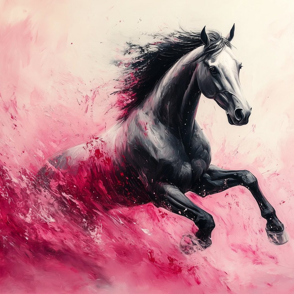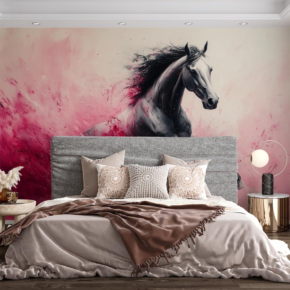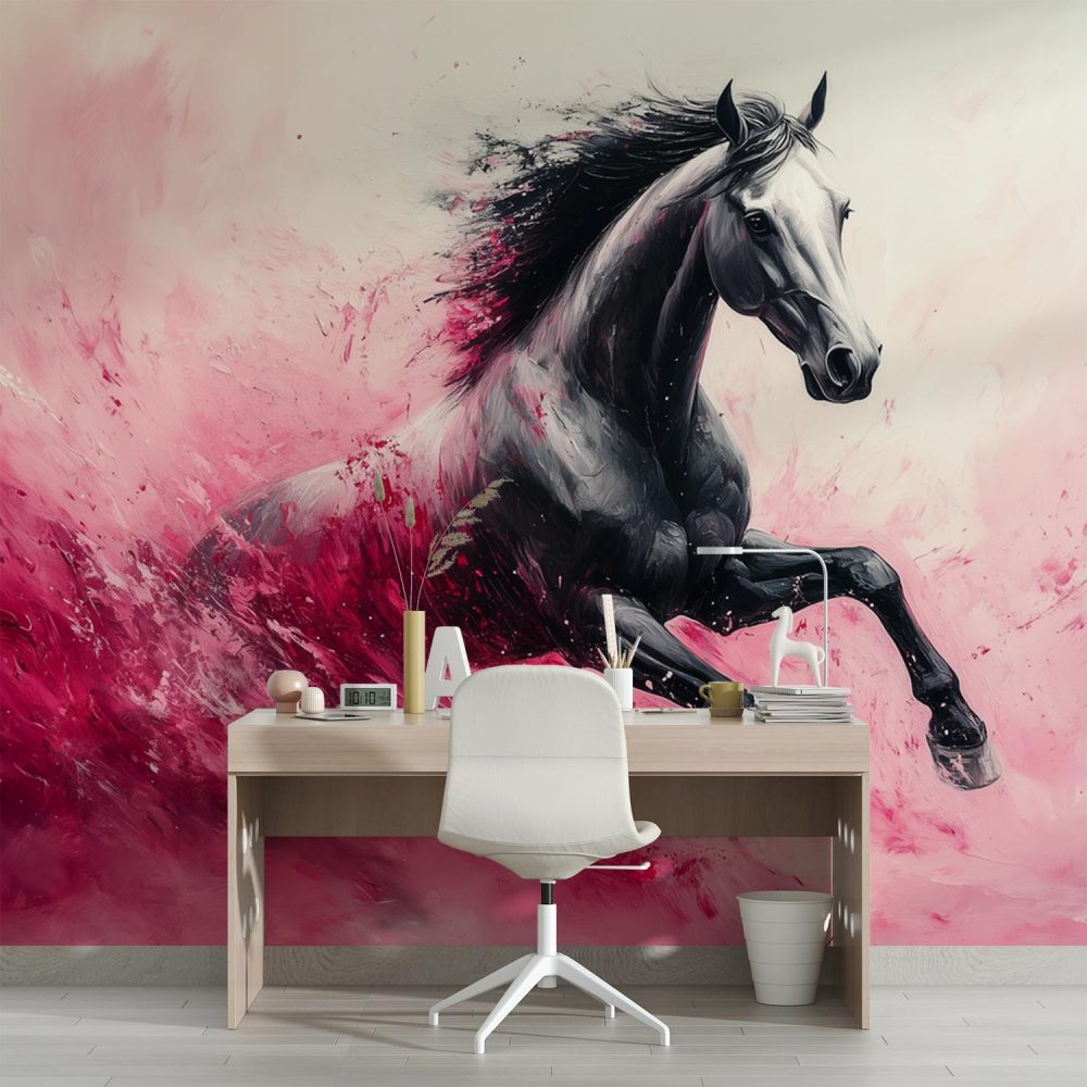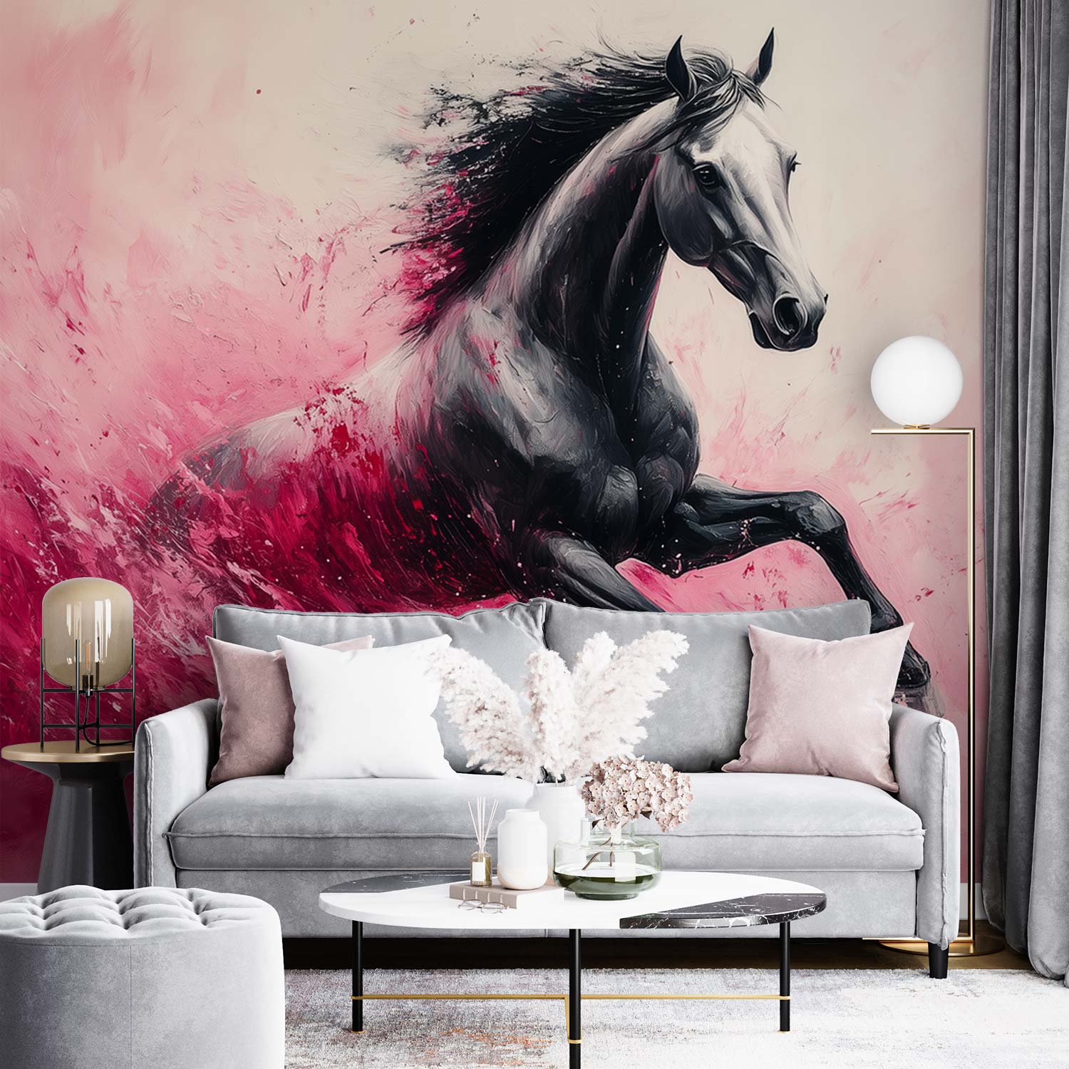 Terug naar collectie / Behang / Abstract behang / Zwarte galopperende paardenschilderij behang