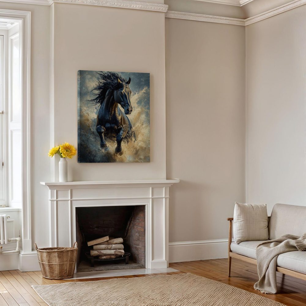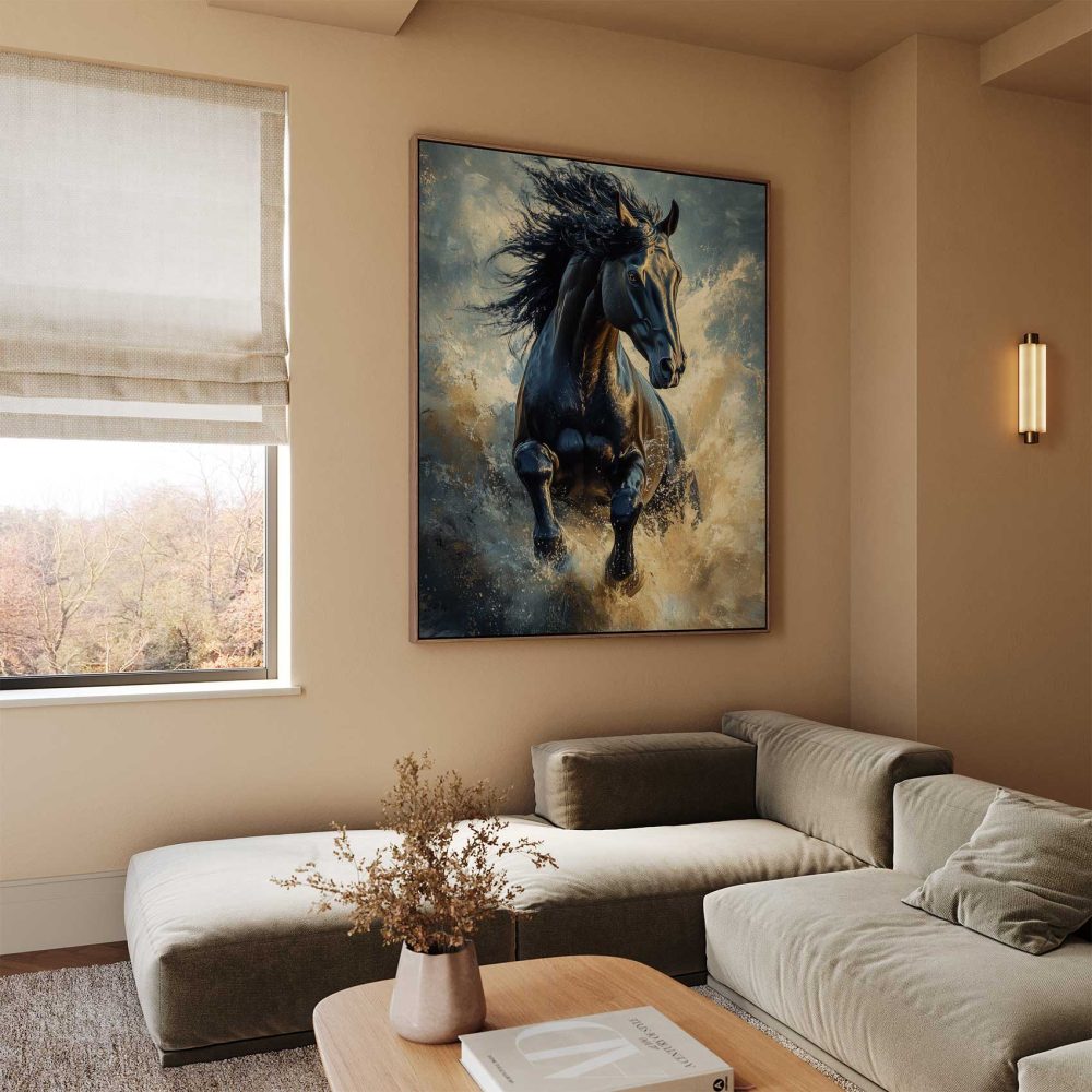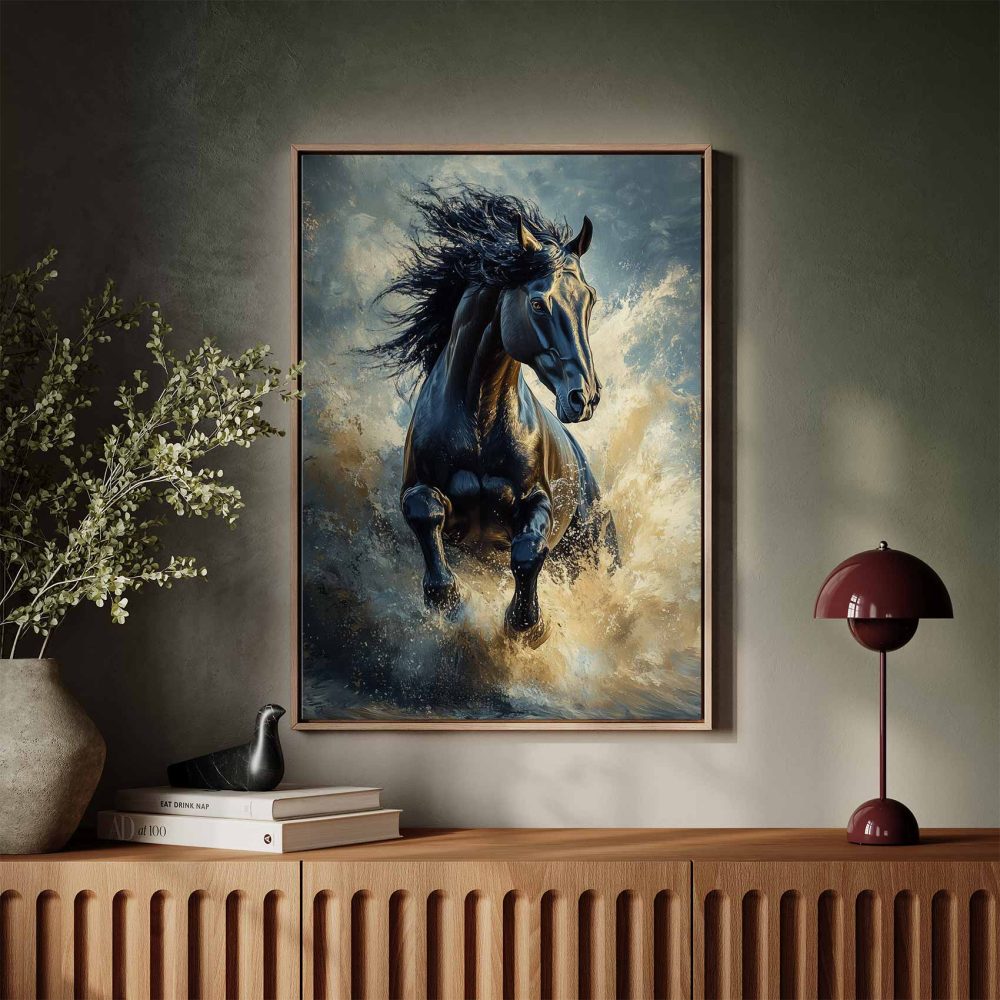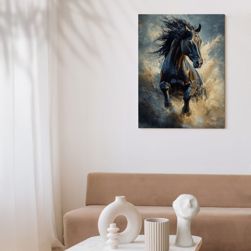 Terug naar collectie / Schilderijen / Dieren Schilderij / Zwarte galopperende waterpaard