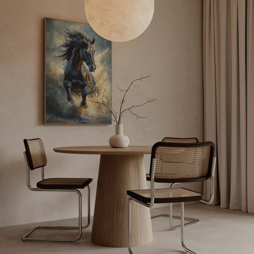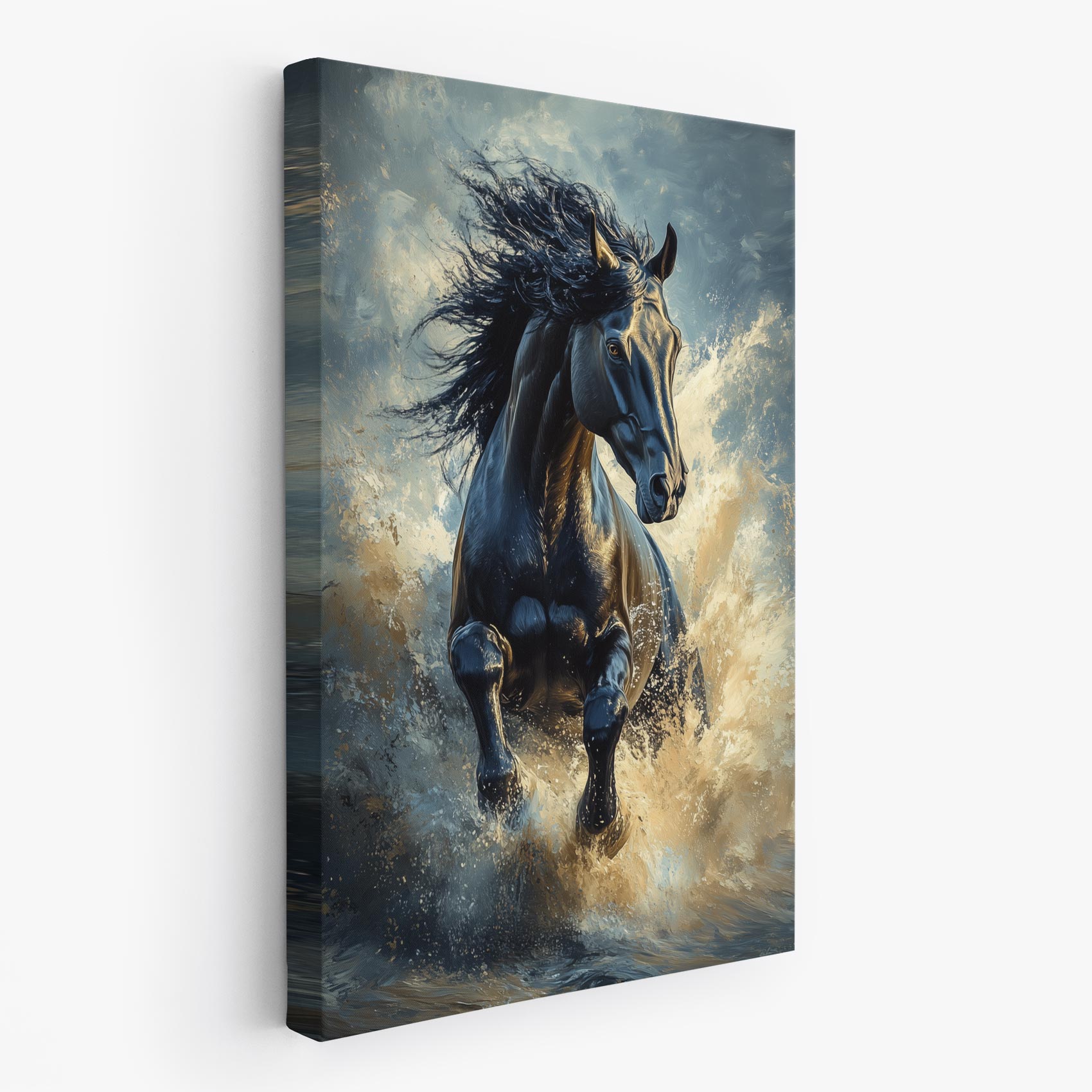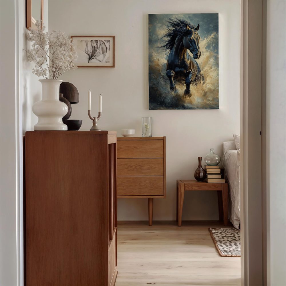 Terug naar collectie / Schilderijen / Dieren Schilderij / Zwarte galopperende waterpaard