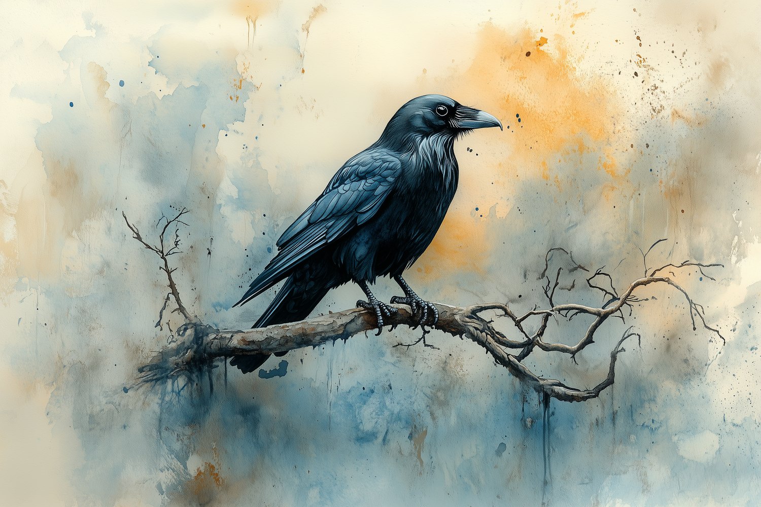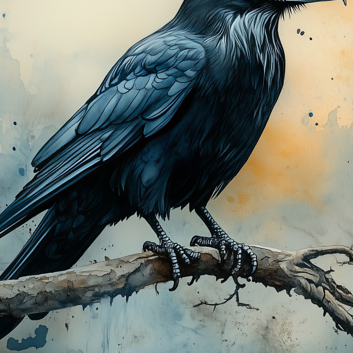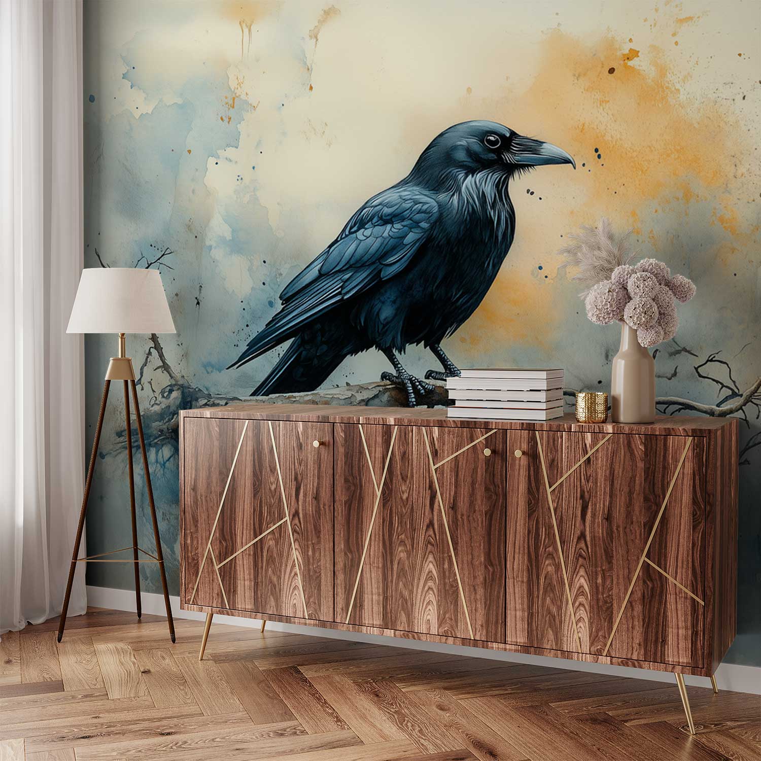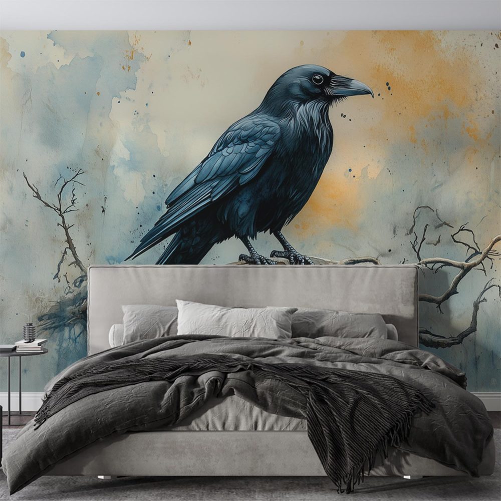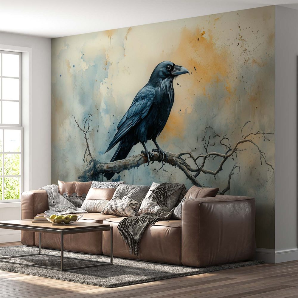 Terug naar collectie / Behang / Abstract behang / Zwarte kraai op tak behang