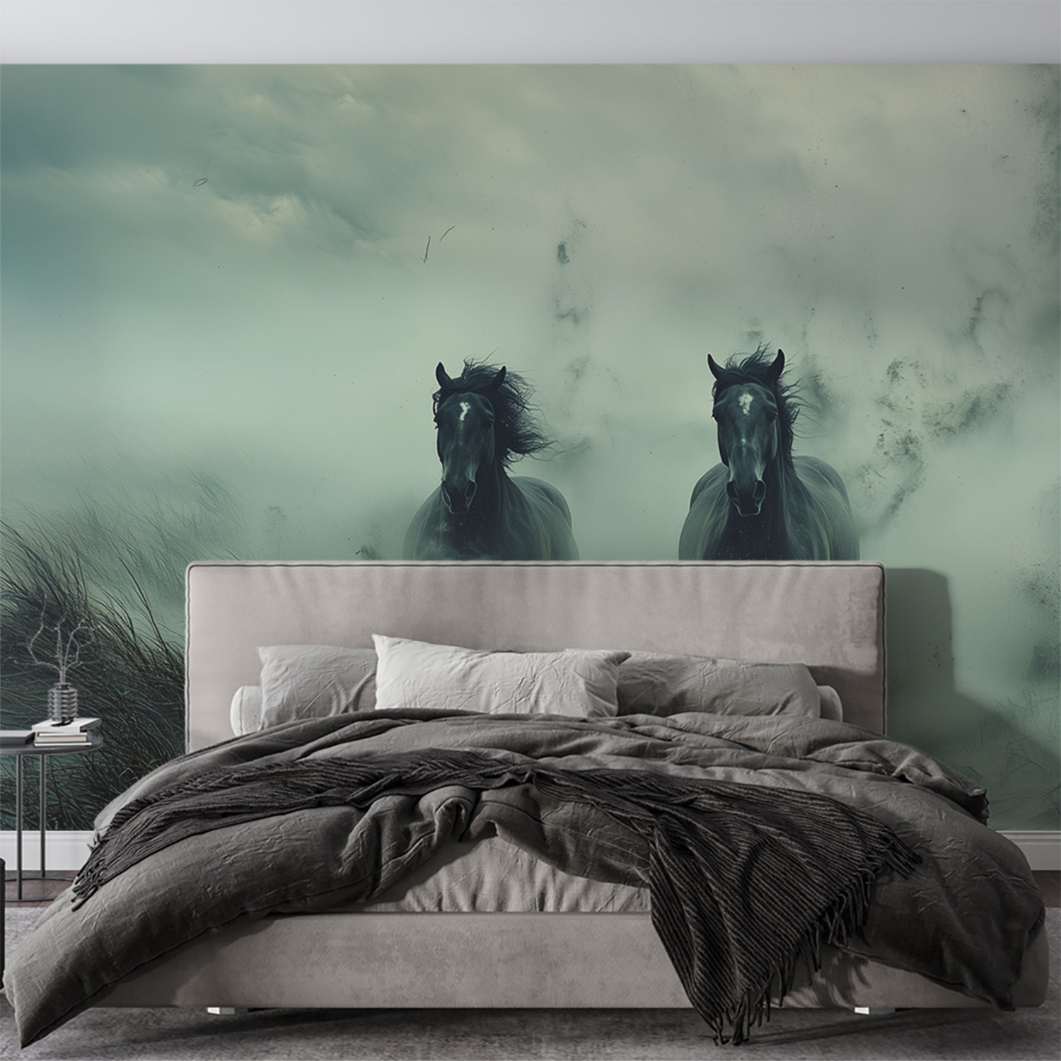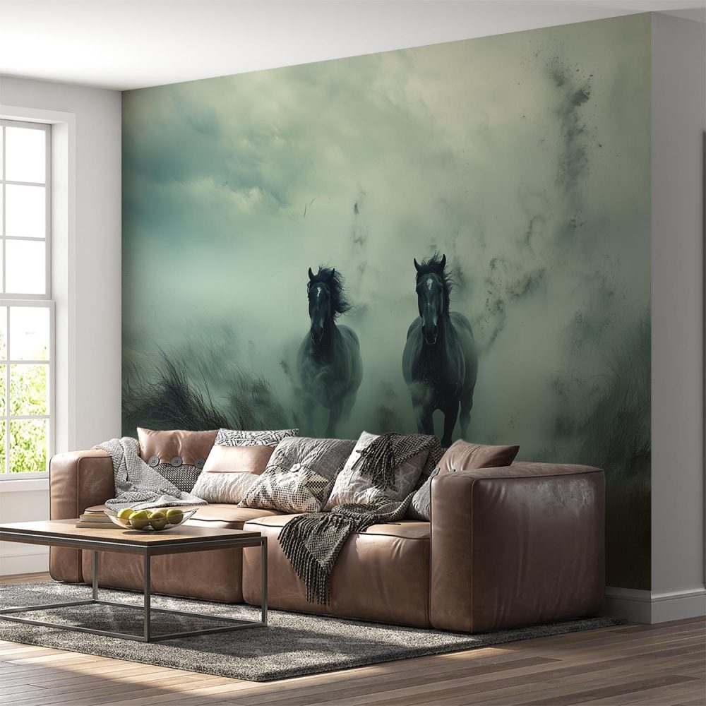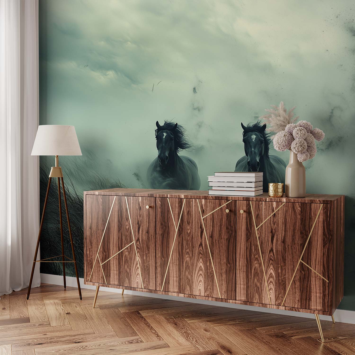 Terug naar collectie / Behang / Zwarte paarden in volle galop behang