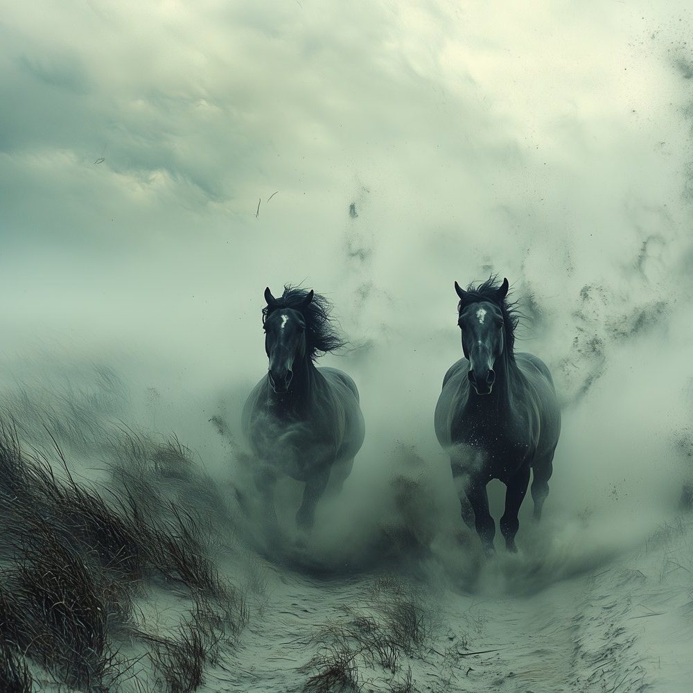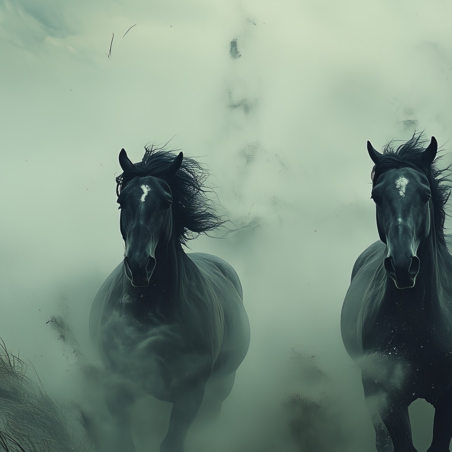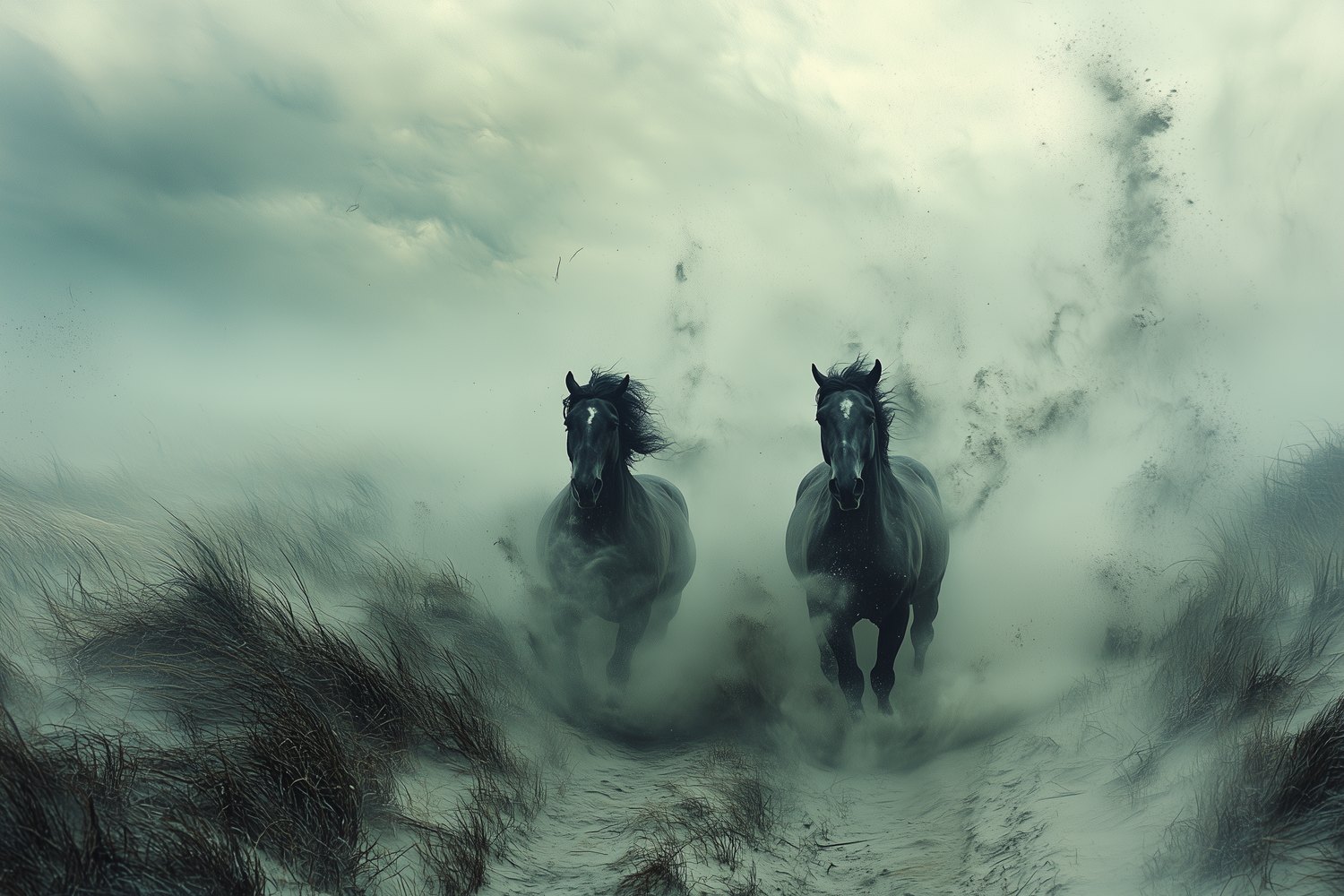Terug naar collectie / Behang / Zwarte paarden in volle galop behang