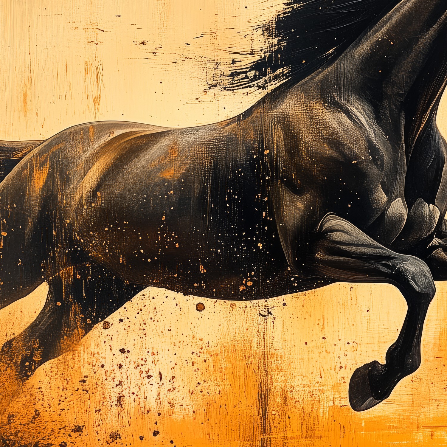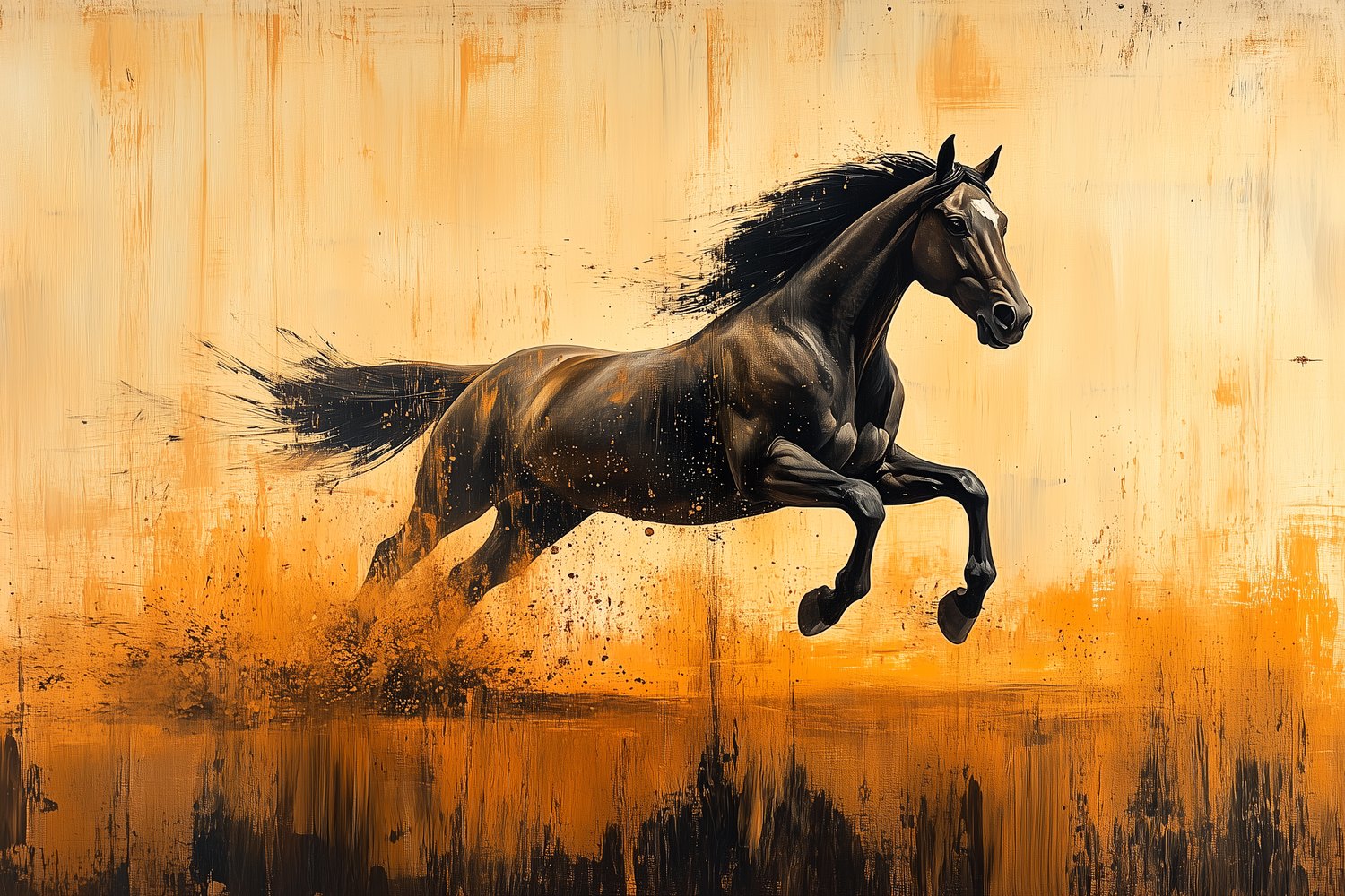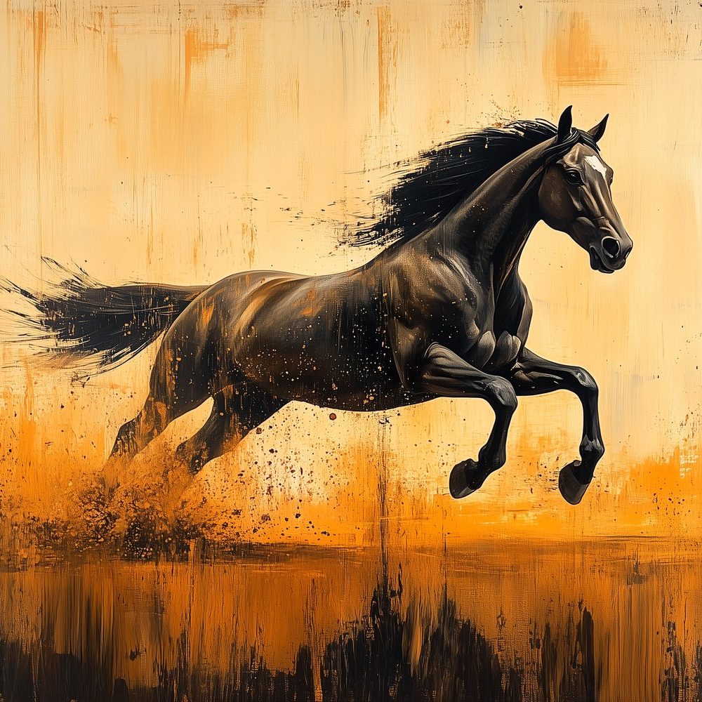 Zwarte rennende paardimpressie behang