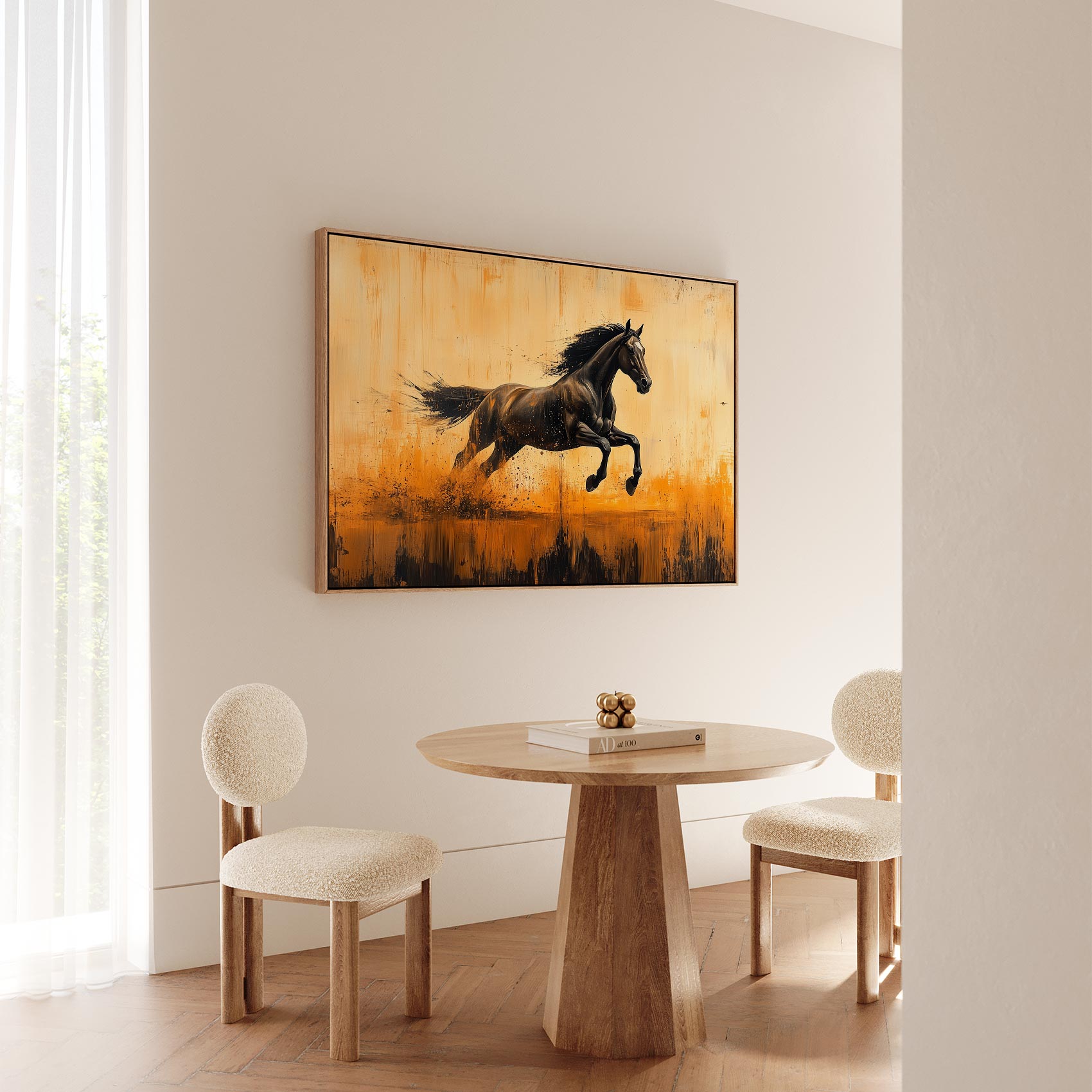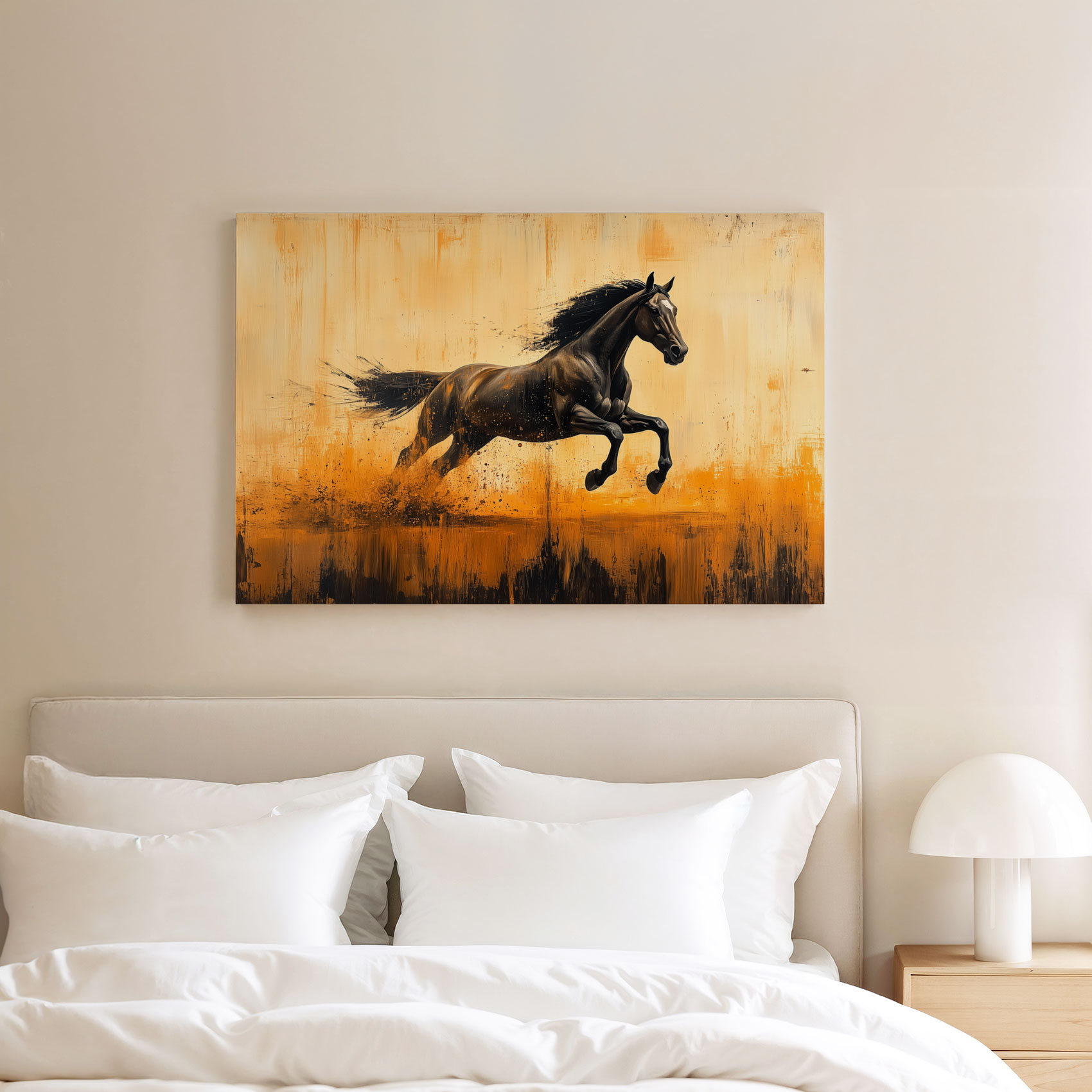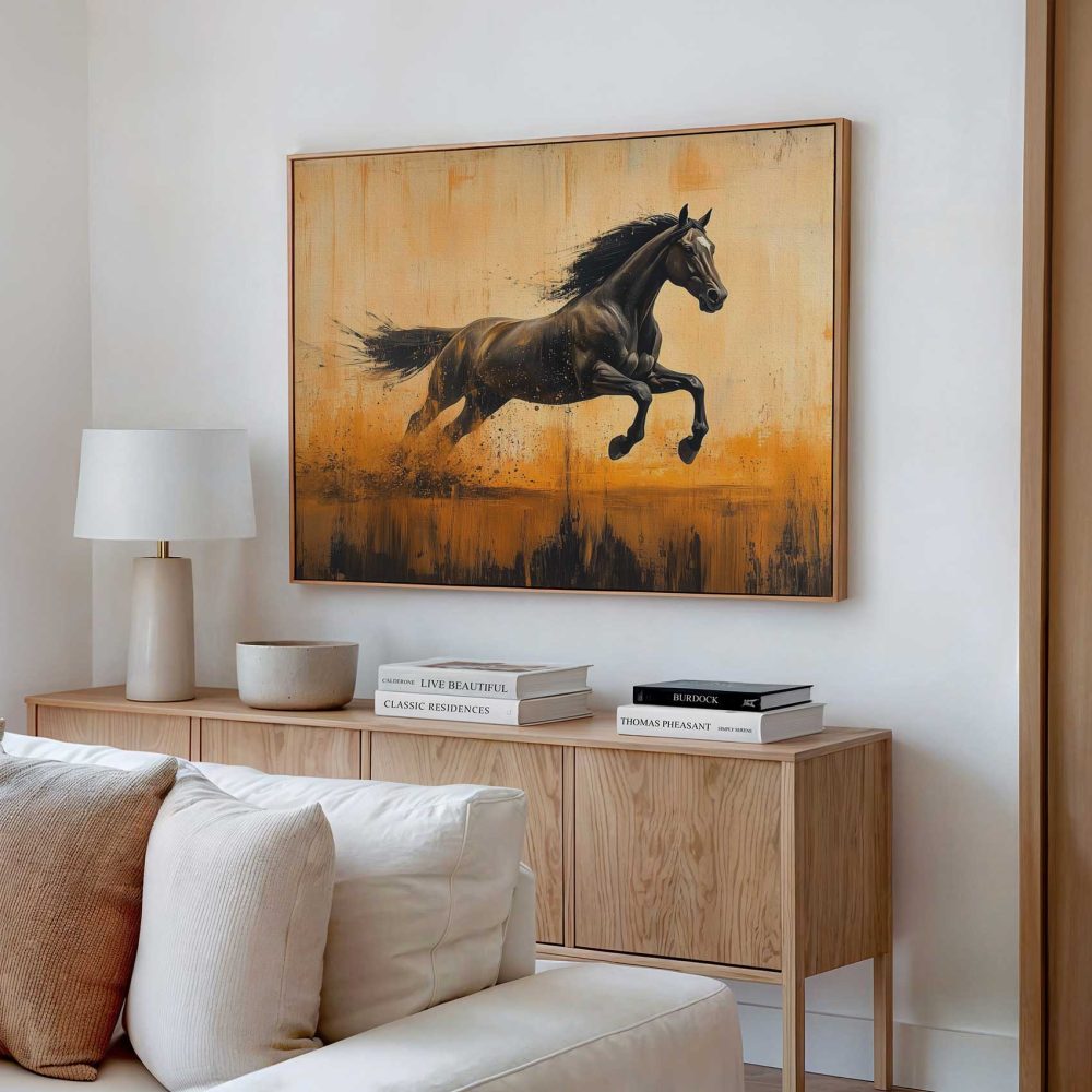 Terug naar collectie / Schilderijen / Abstract Schilderij / Zwarte renpaard in vlammen