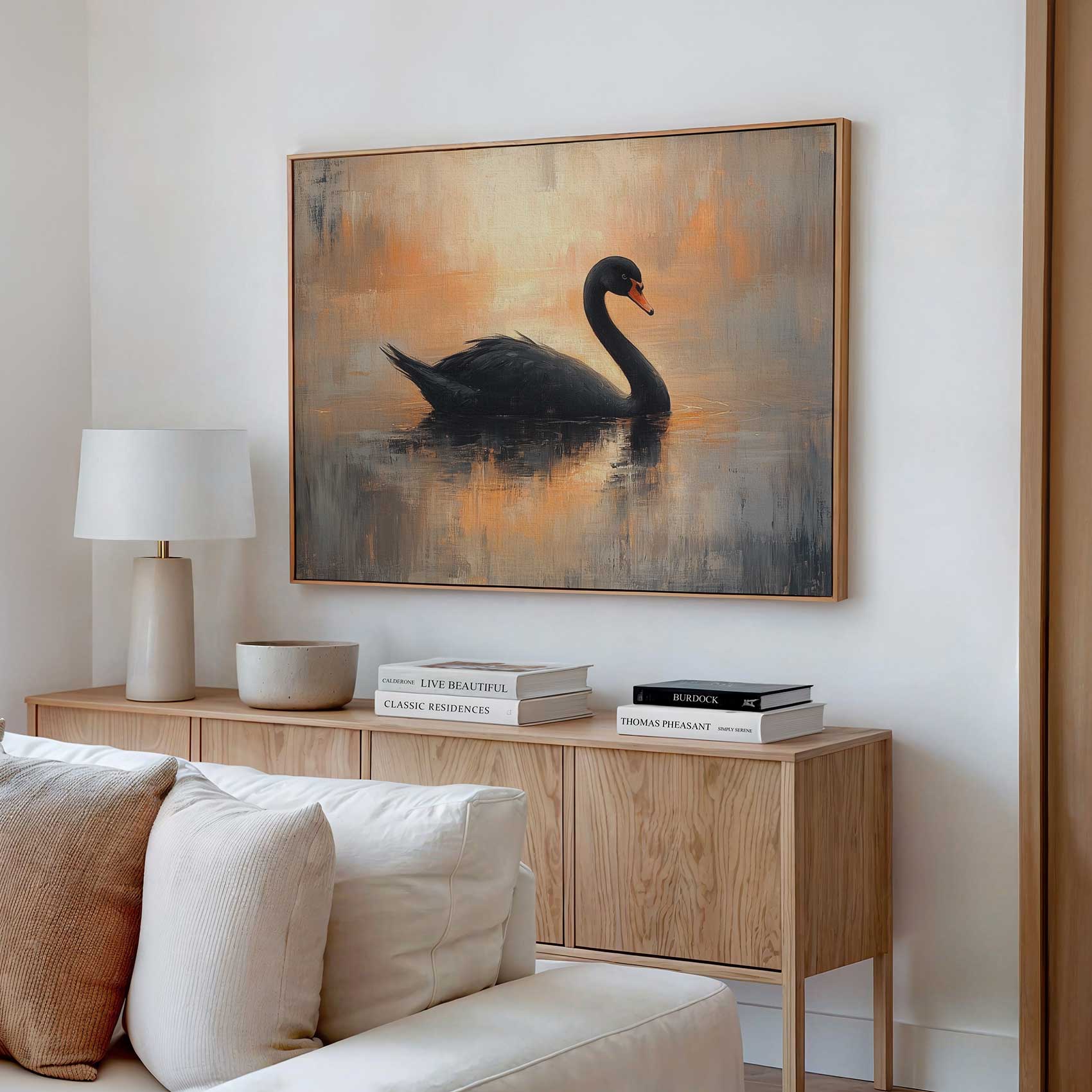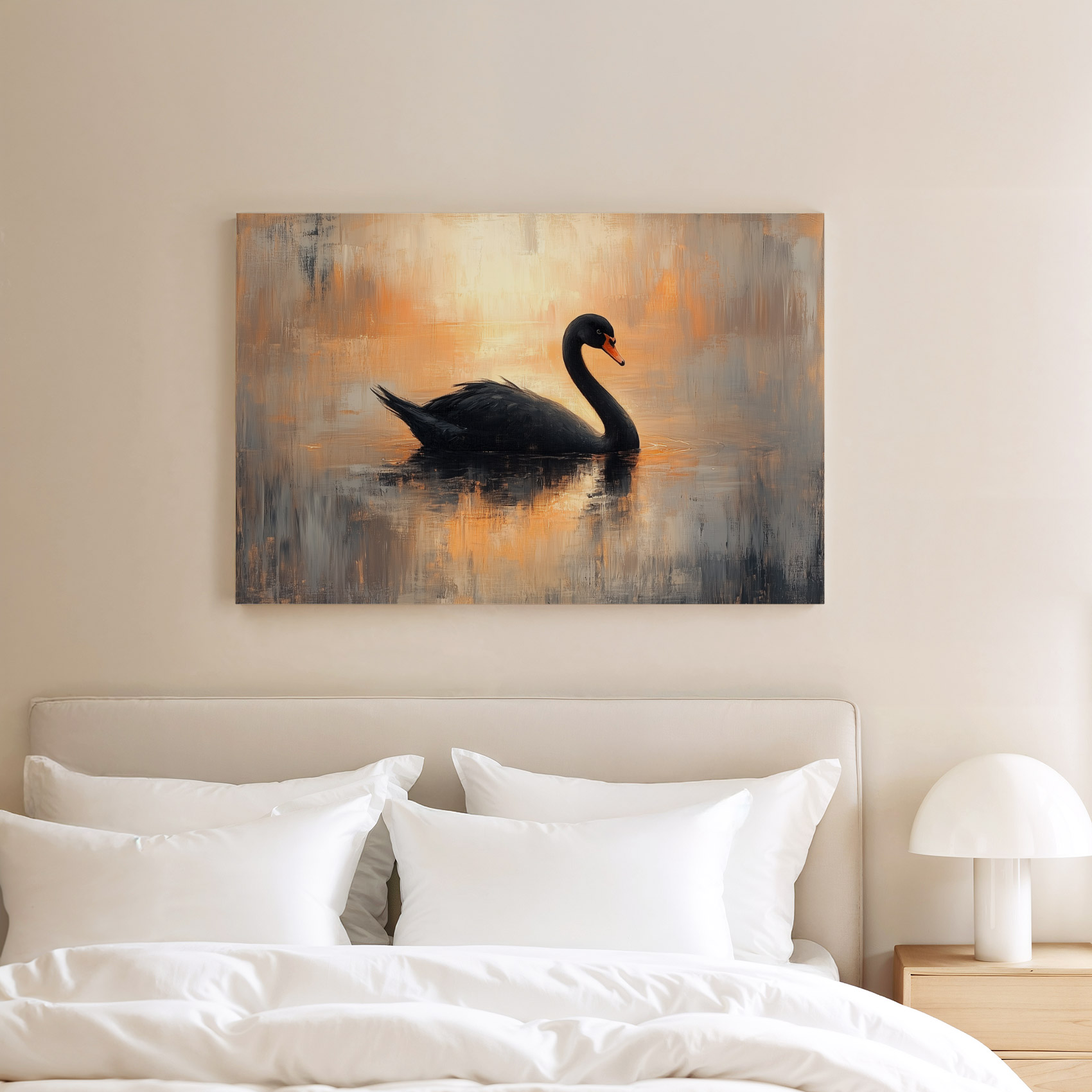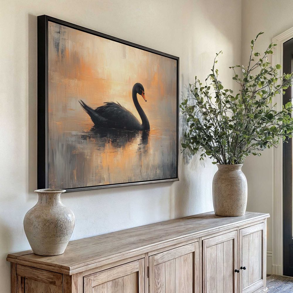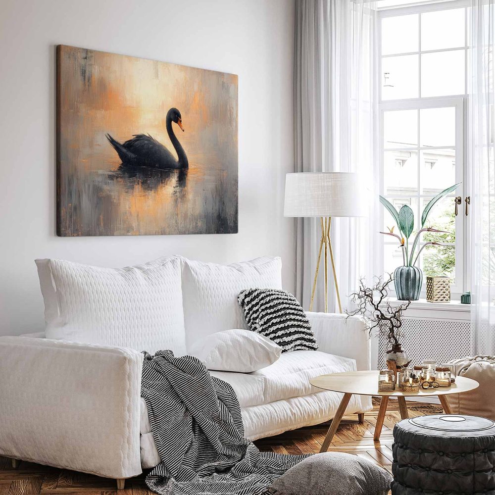 Terug naar collectie / Schilderijen / Dieren Schilderij / Zwarte zwaan in impressionistische sfeer