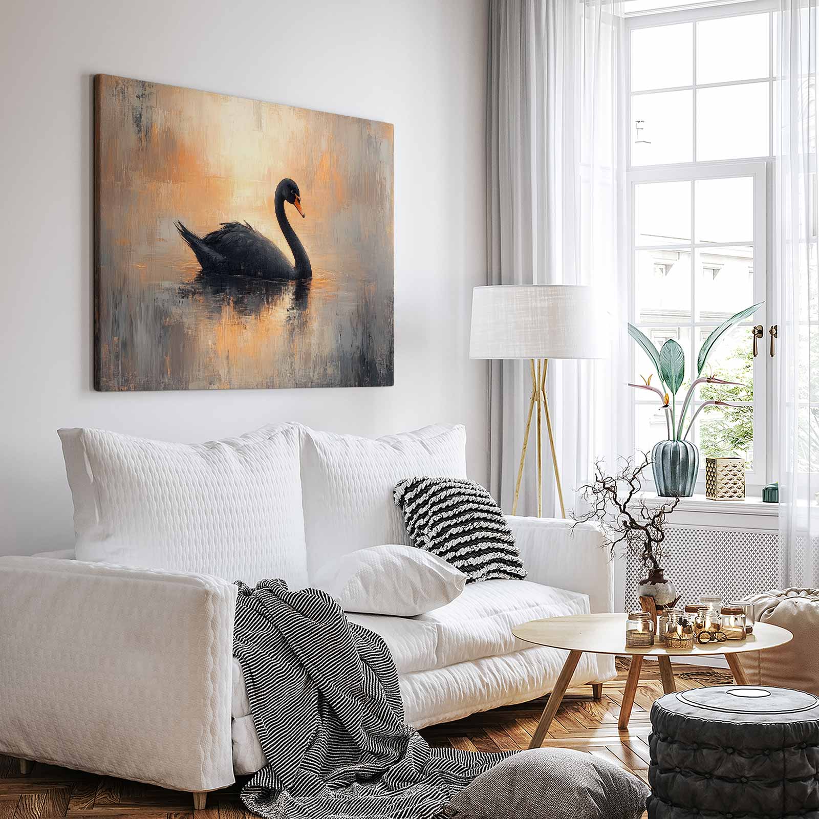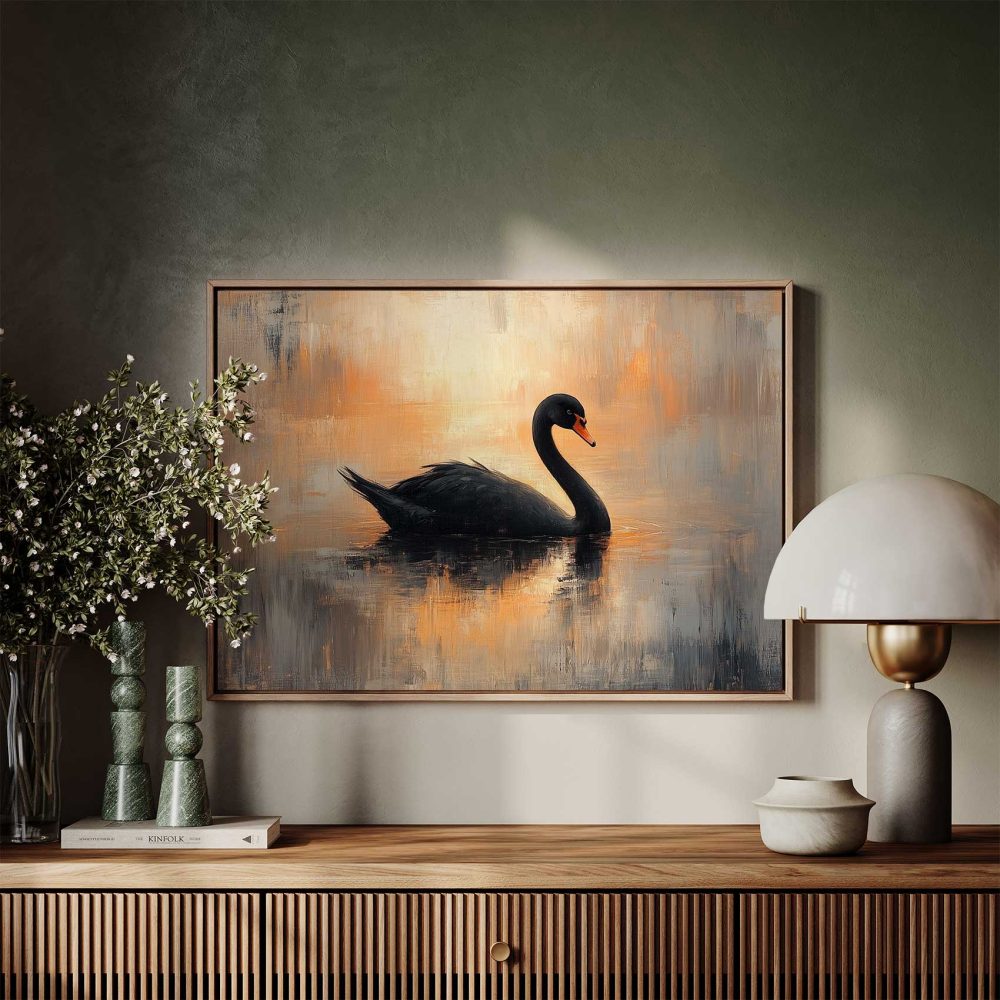 Zwarte zwaan in impressionistische sfeer
