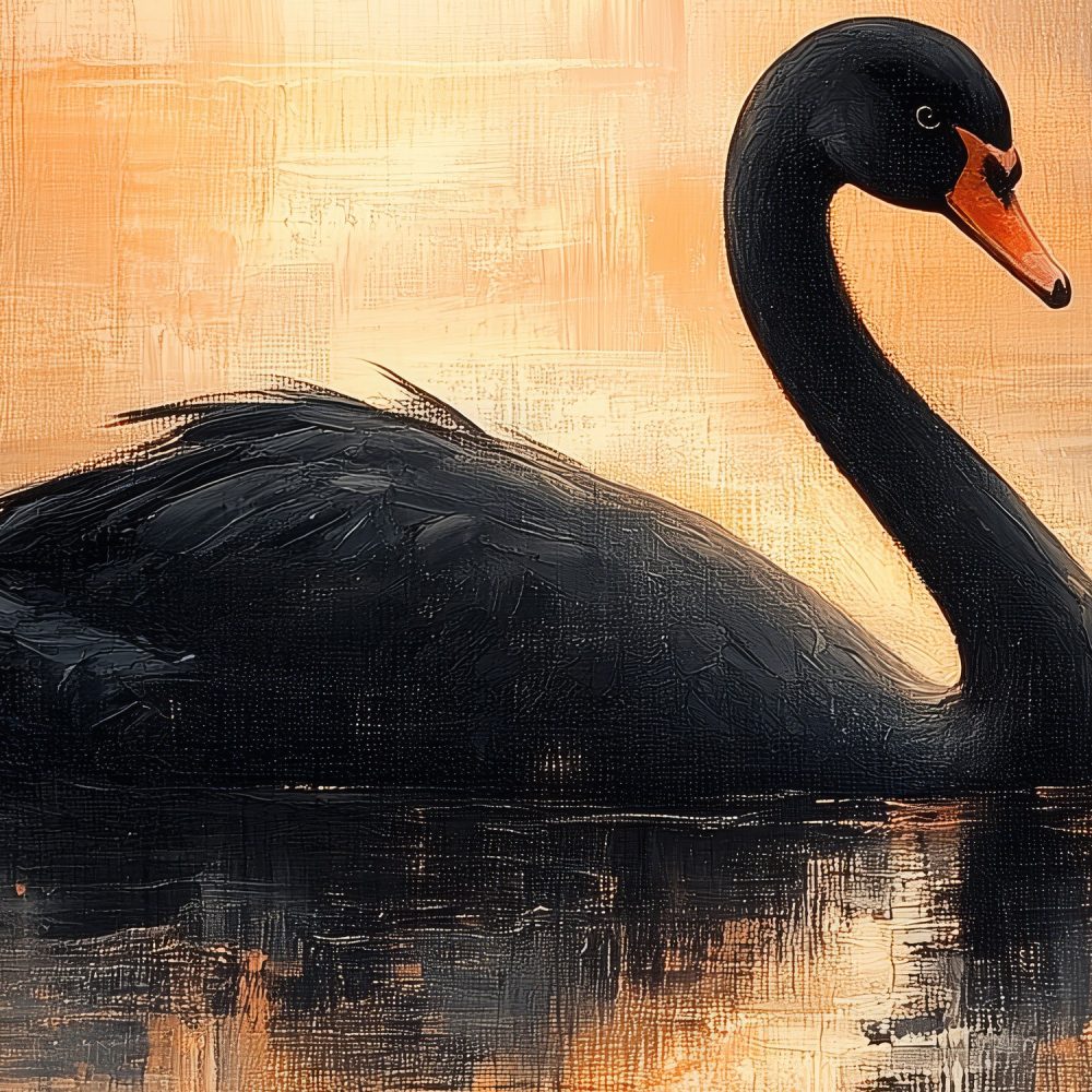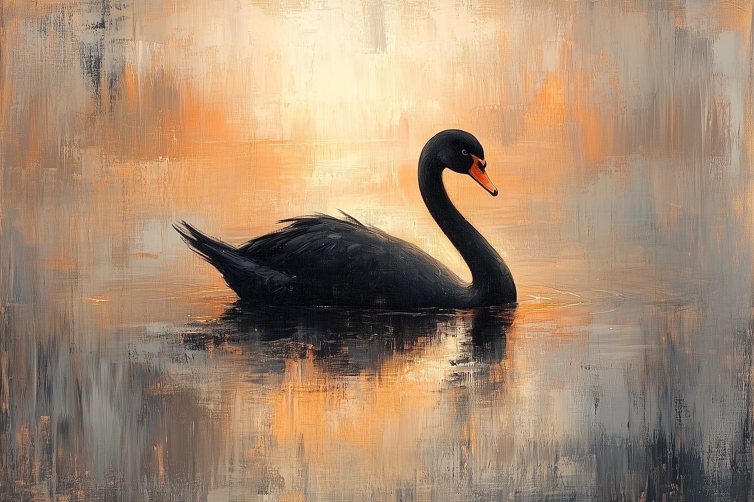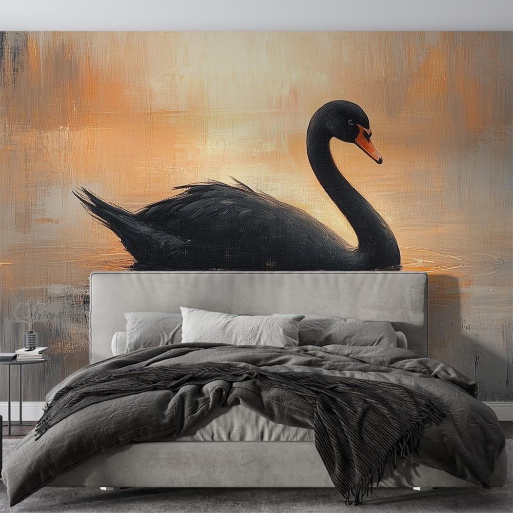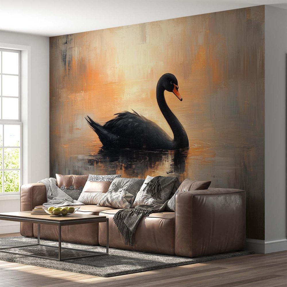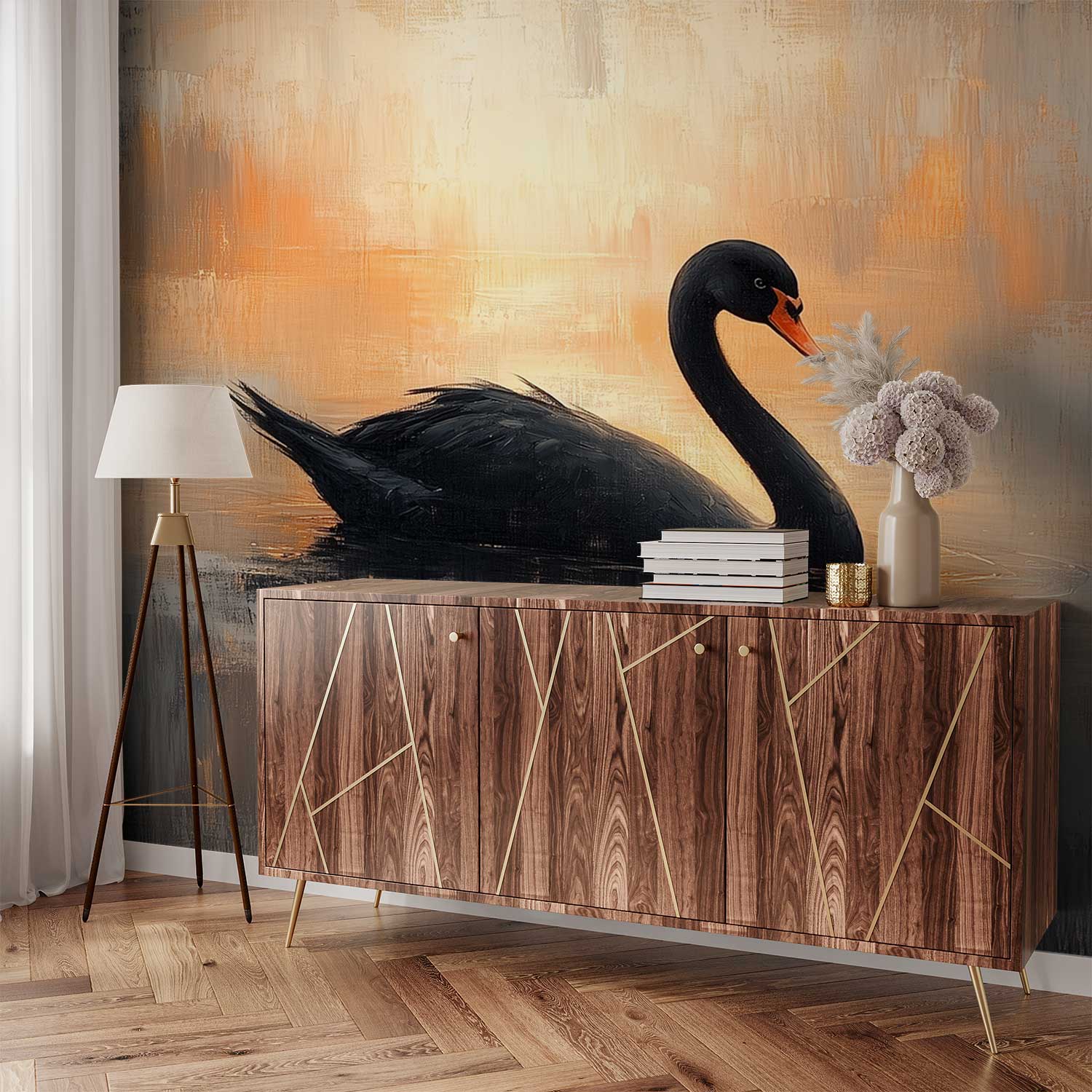 Terug naar collectie / Behang / Abstract behang / Zwarte zwaan in oranje water behang