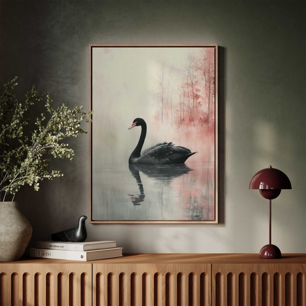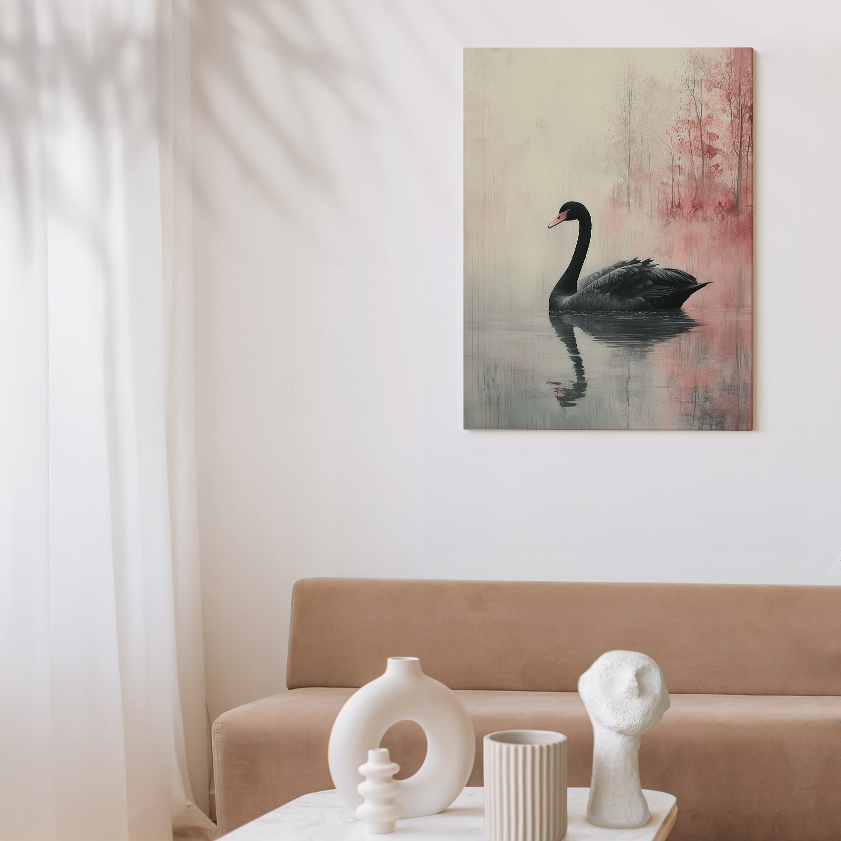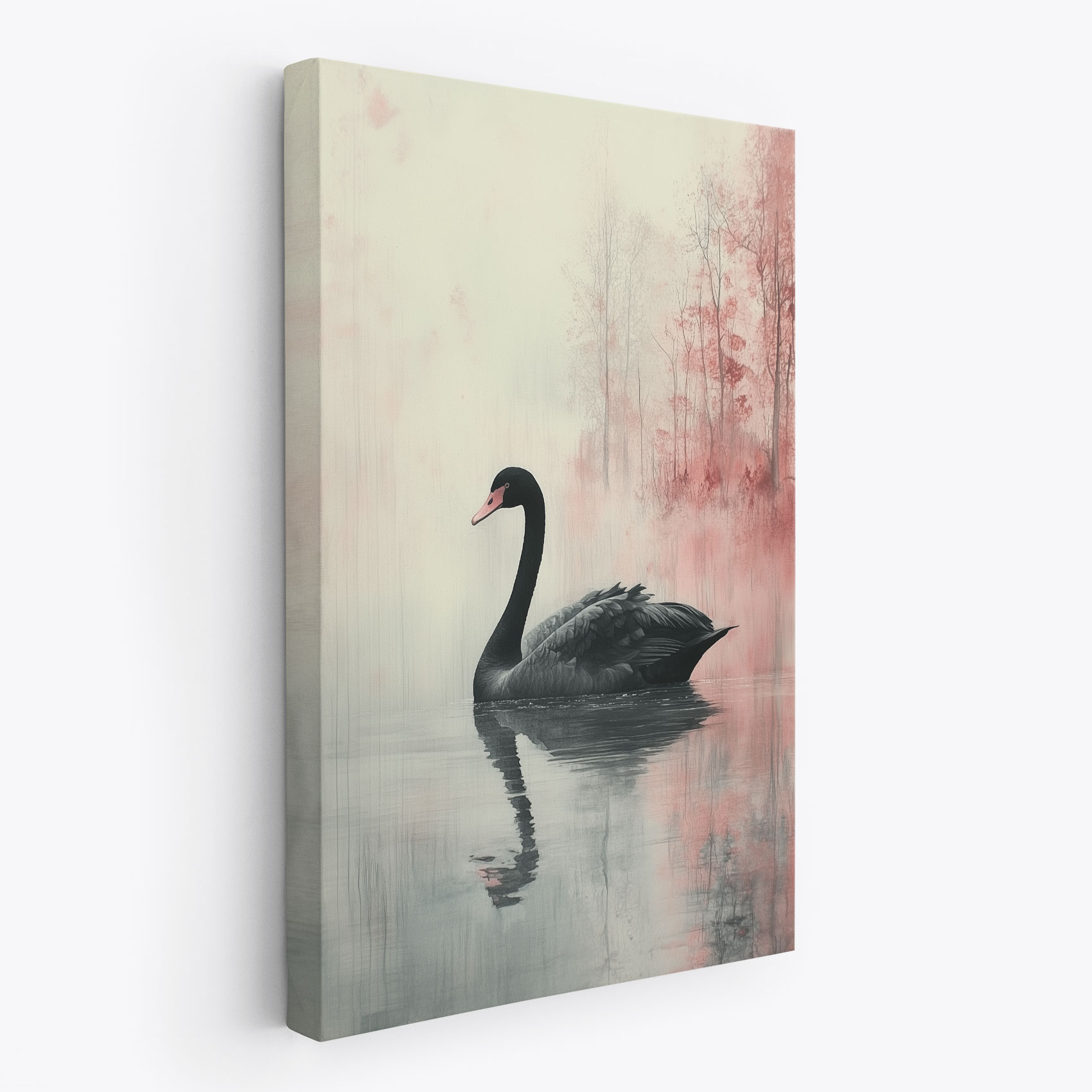 Terug naar collectie / Schilderijen / Dieren Schilderij / Zwarte zwaan in serene weerspiegeling