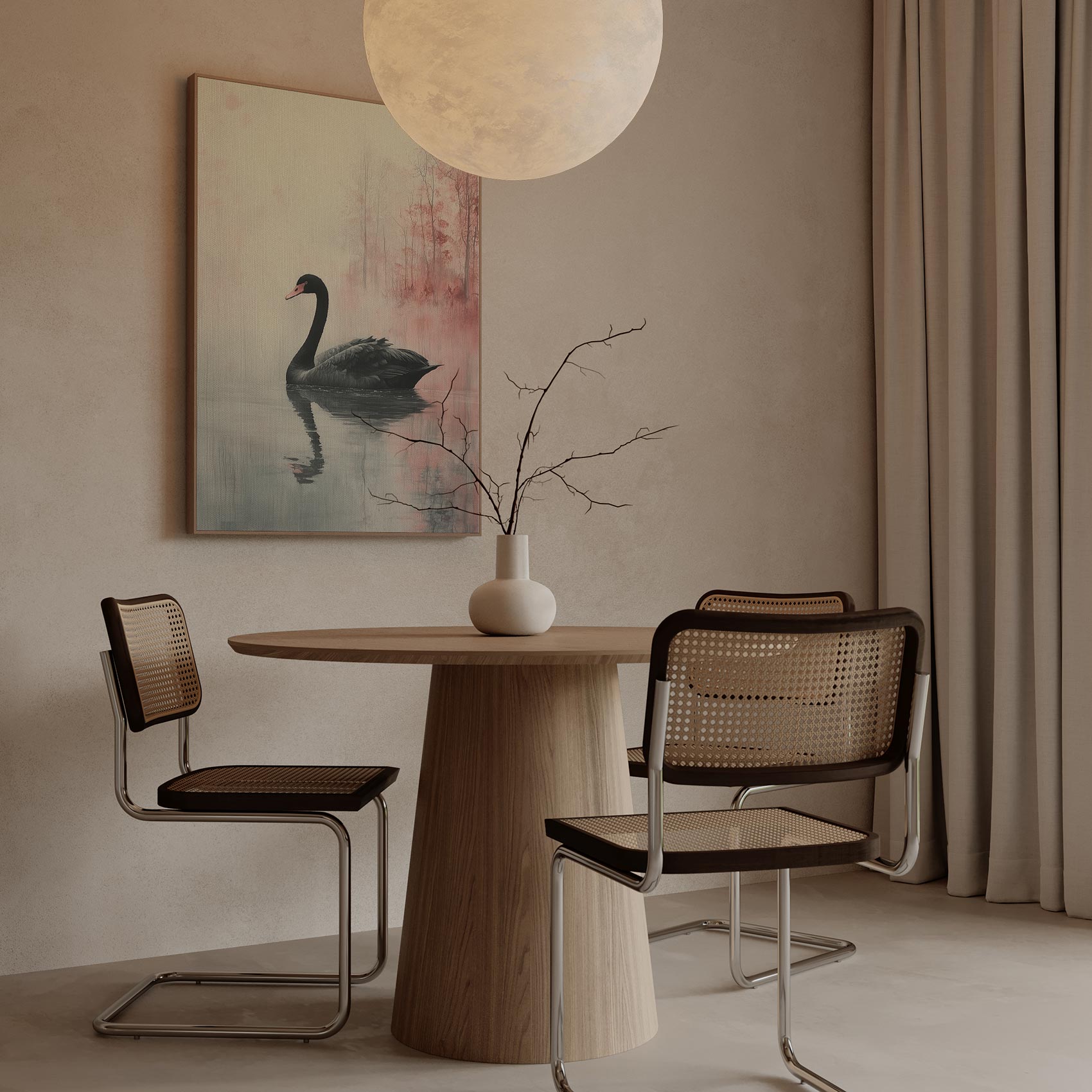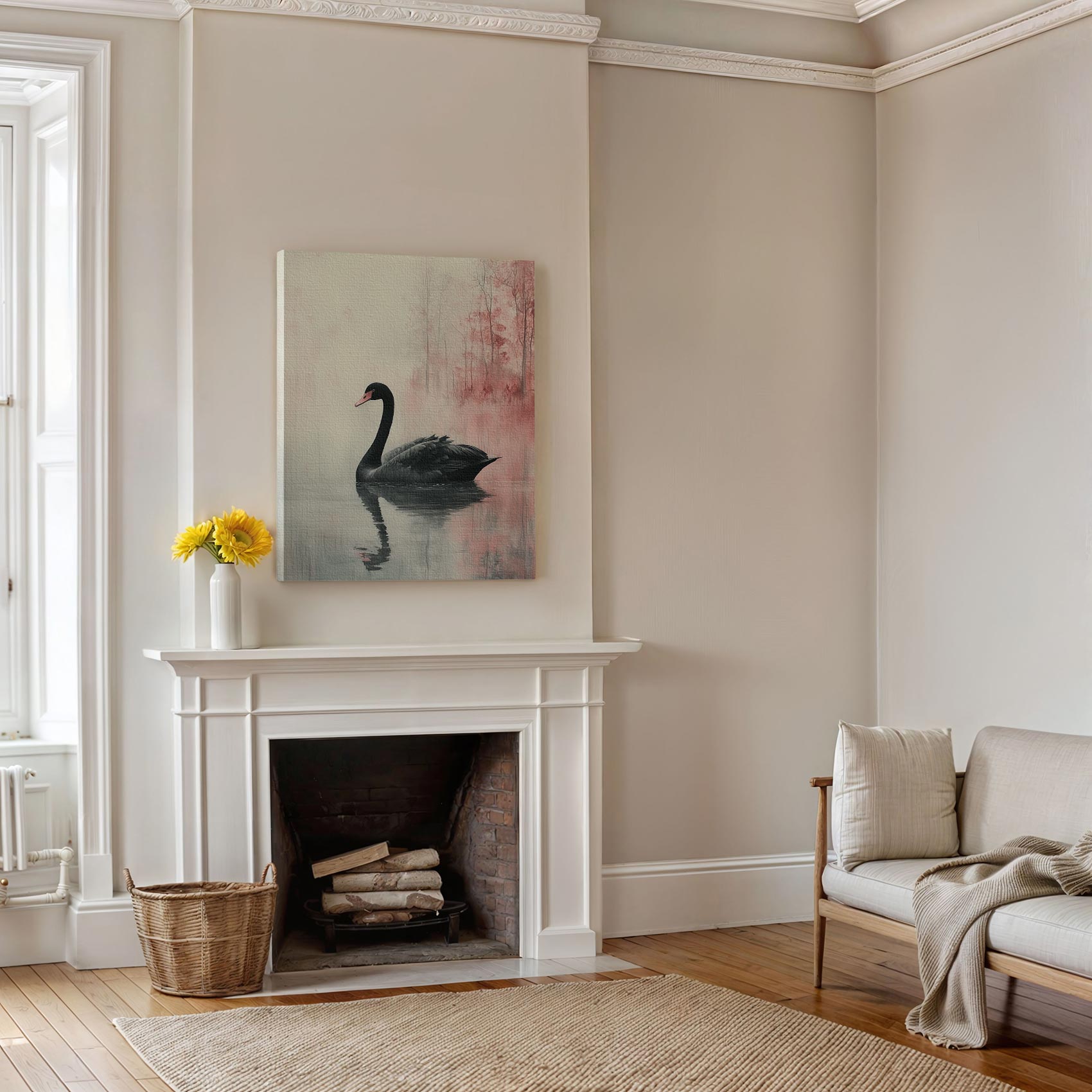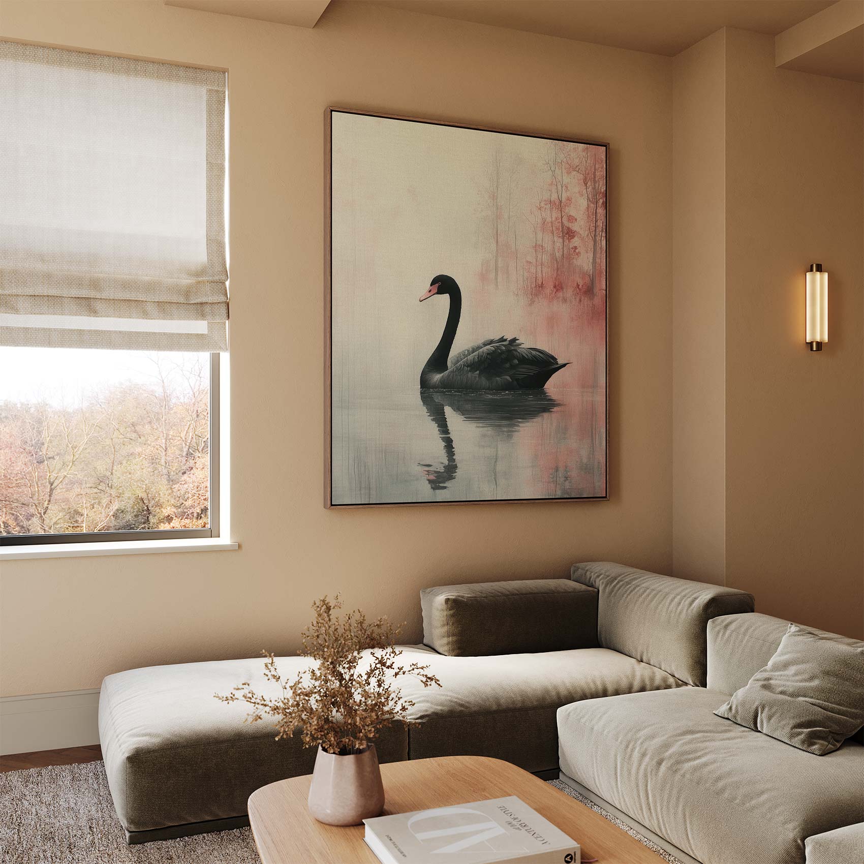 Terug naar collectie / Schilderijen / Dieren Schilderij / Zwarte zwaan in serene weerspiegeling