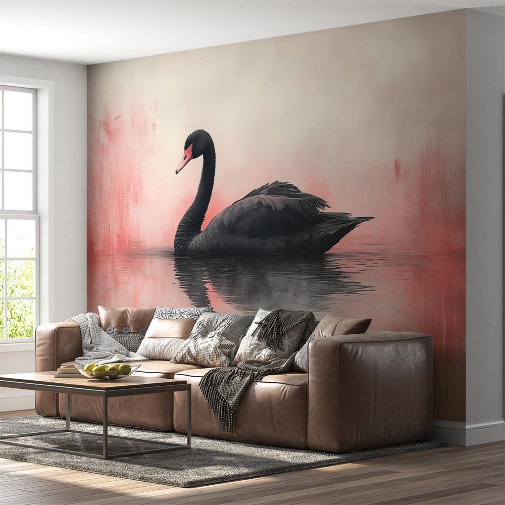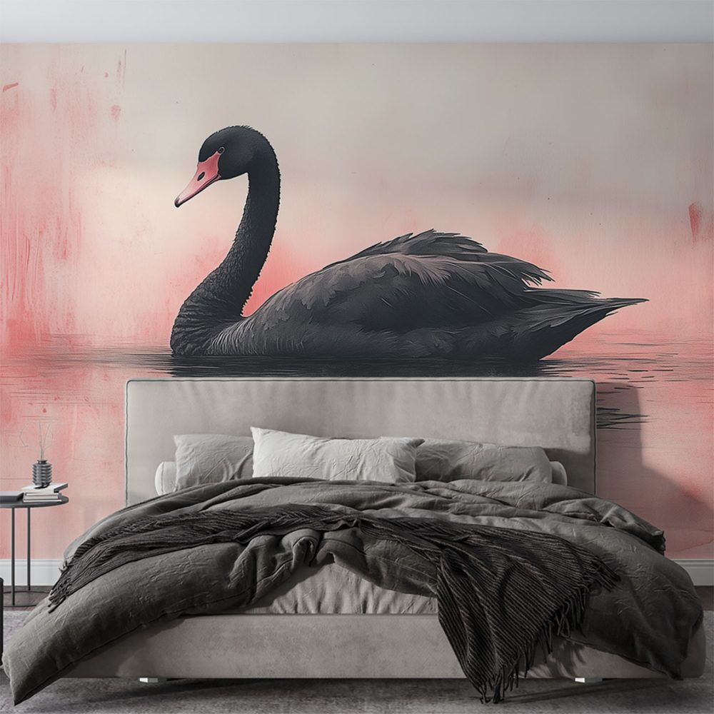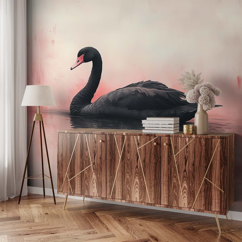 Terug naar collectie / Behang / Zwarte Zwaan Roze Spiegel behang