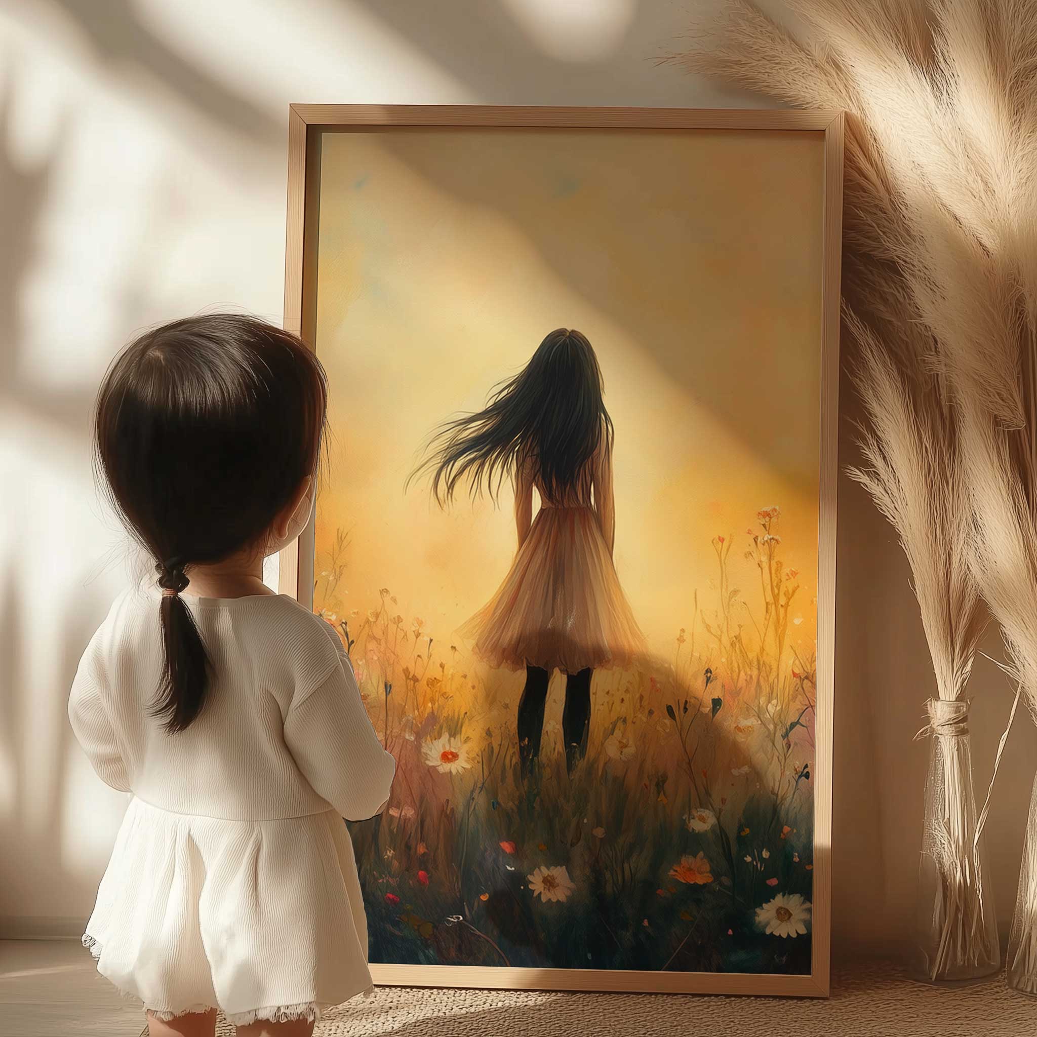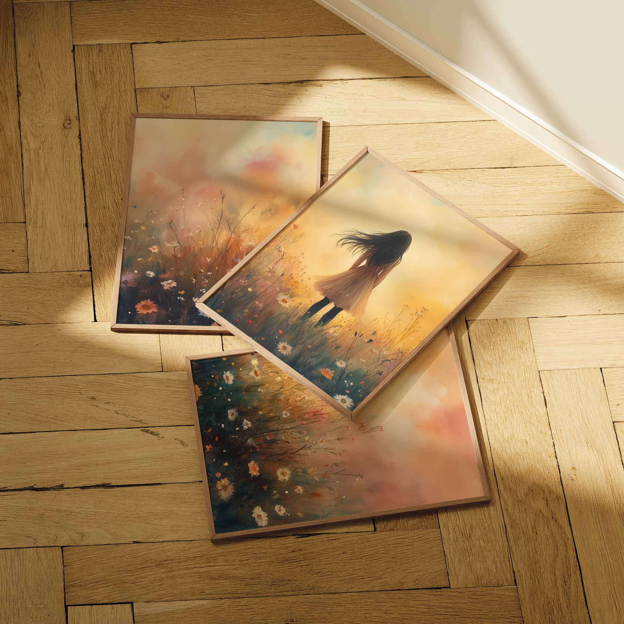 Terug naar collectie / Uncategorized / Zwevend in een Dromerig Bloemenveld bij Zonsondergang