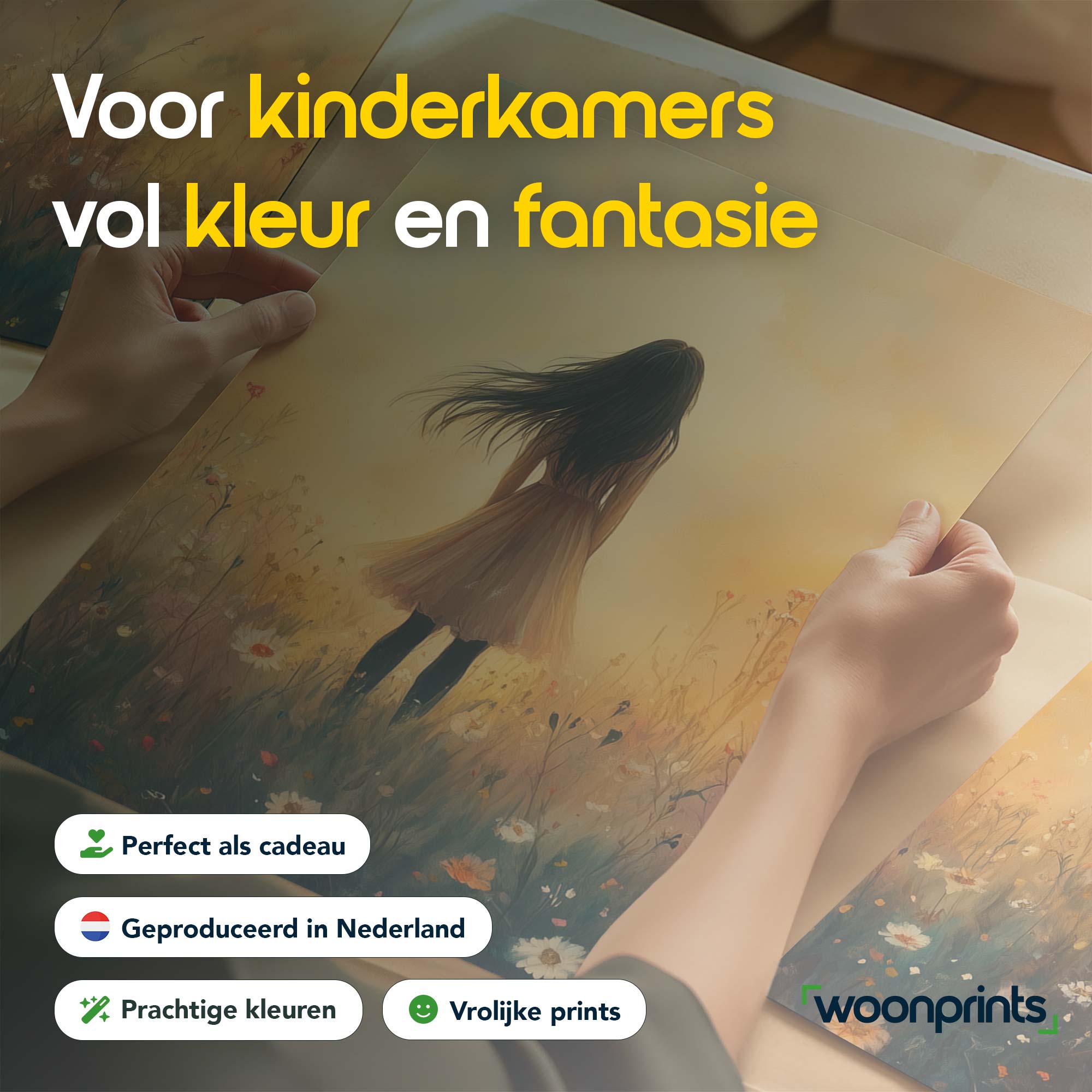 Zwevend in een Dromerig Bloemenveld bij Zonsondergang
